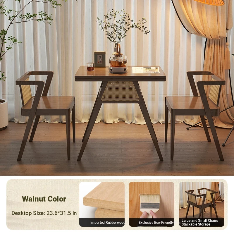Walnut Color-Imported Rubber Wood [One Table and Two Chairs]