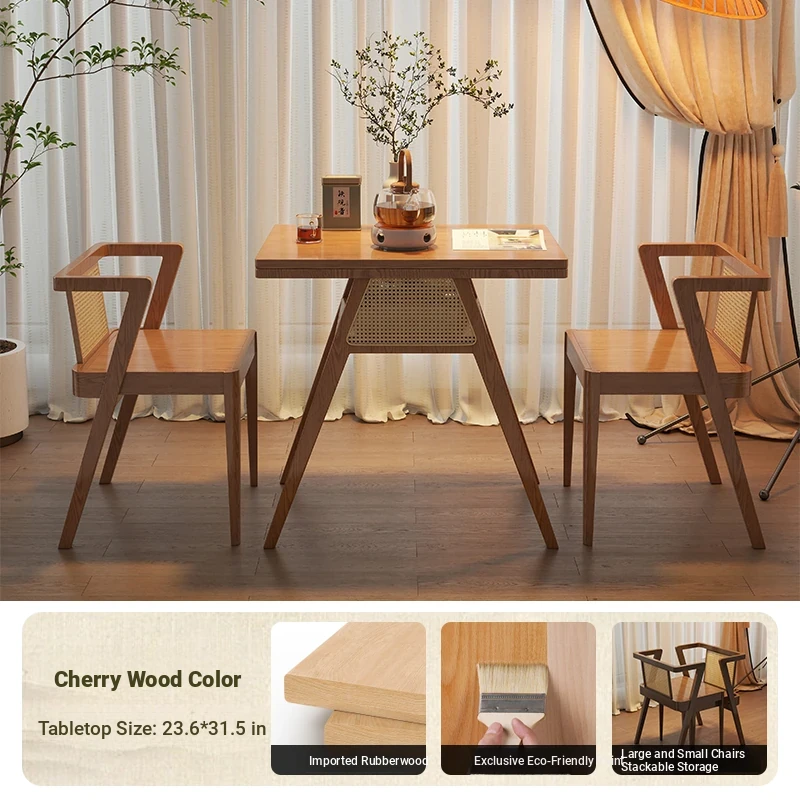 Cherry Wood Color-Imported Rubber Wood [One Table and Two Chairs]