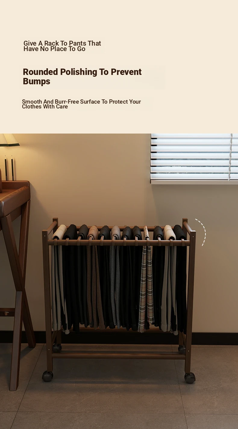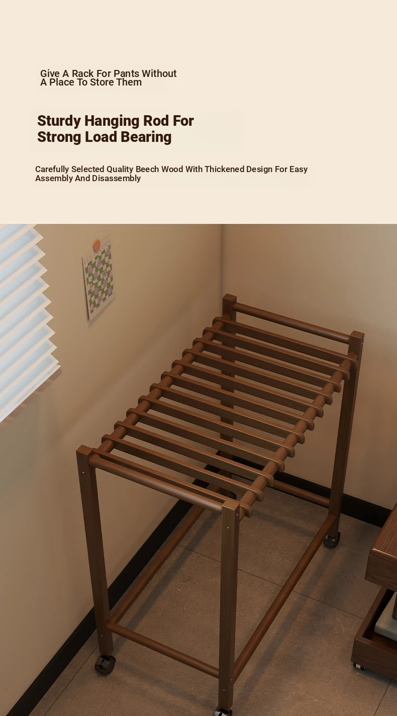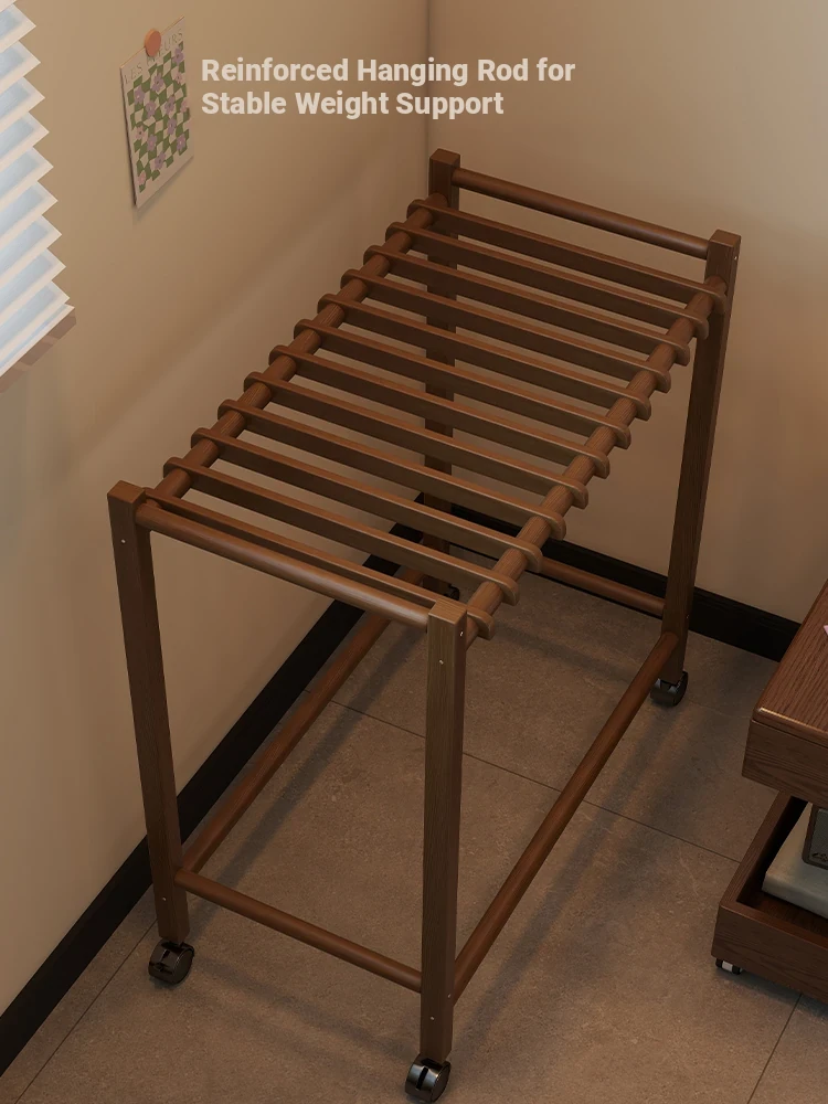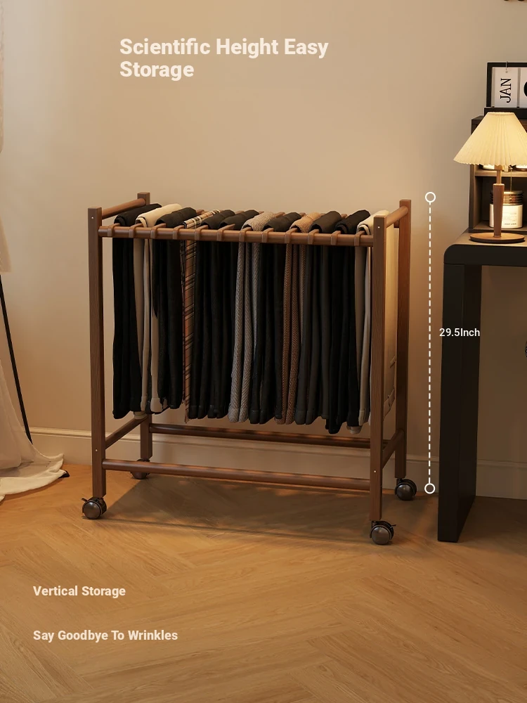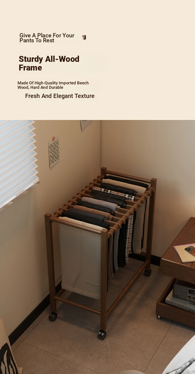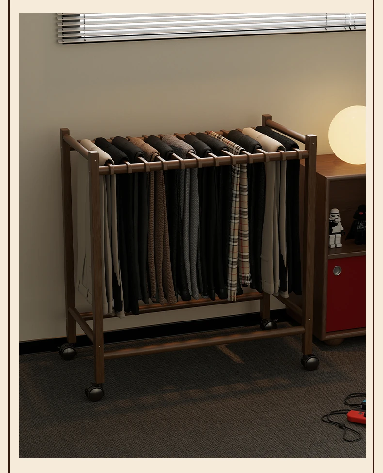 Portable Solid Wood Multi-Functional Clothes Rack with Wheels - No Trace Design for Bedroom, Ideal for Hanging and Organizing Pants, Perfect Home Drying Solution!