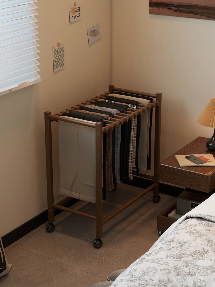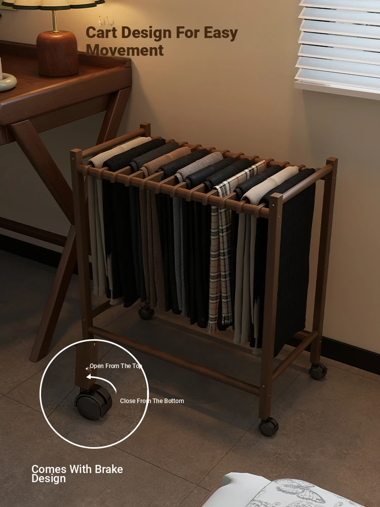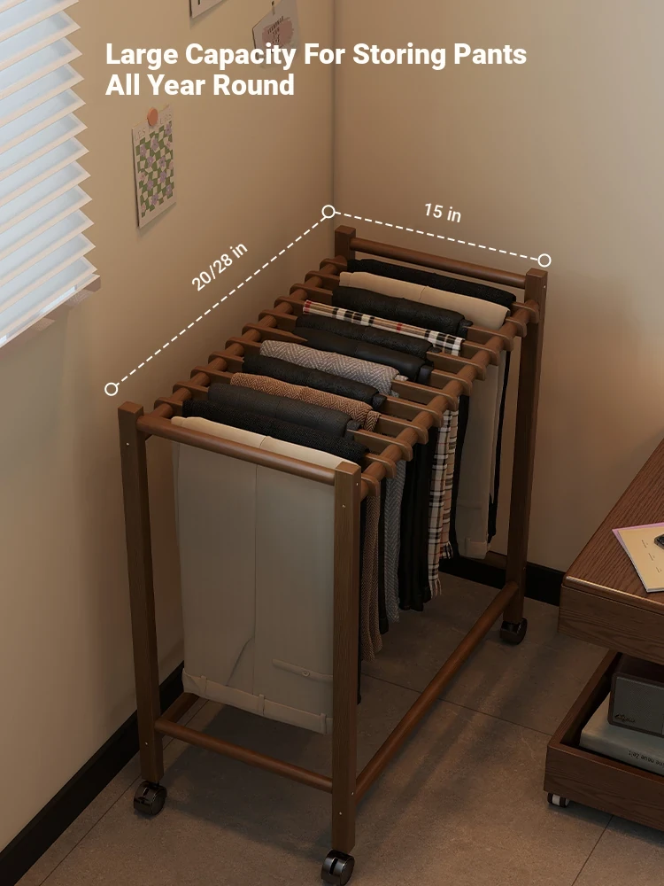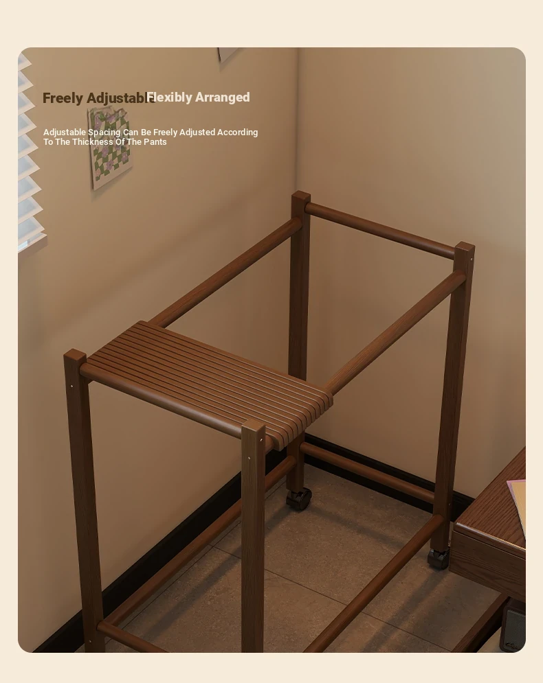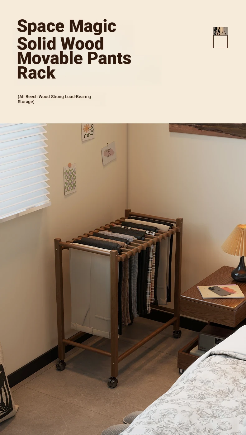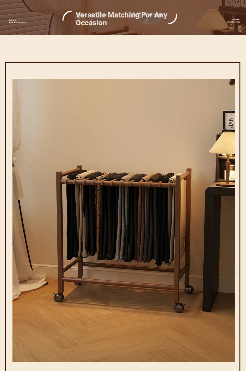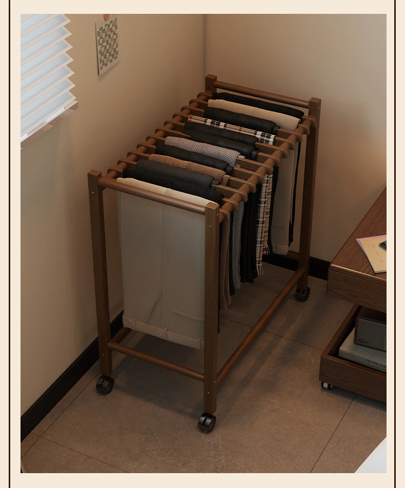 Portable Solid Wood Multi-Functional Clothes Rack with Wheels - No Trace Design for Bedroom, Ideal for Hanging and Organizing Pants, Perfect Home Drying Solution!
