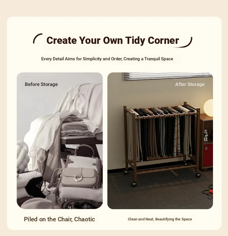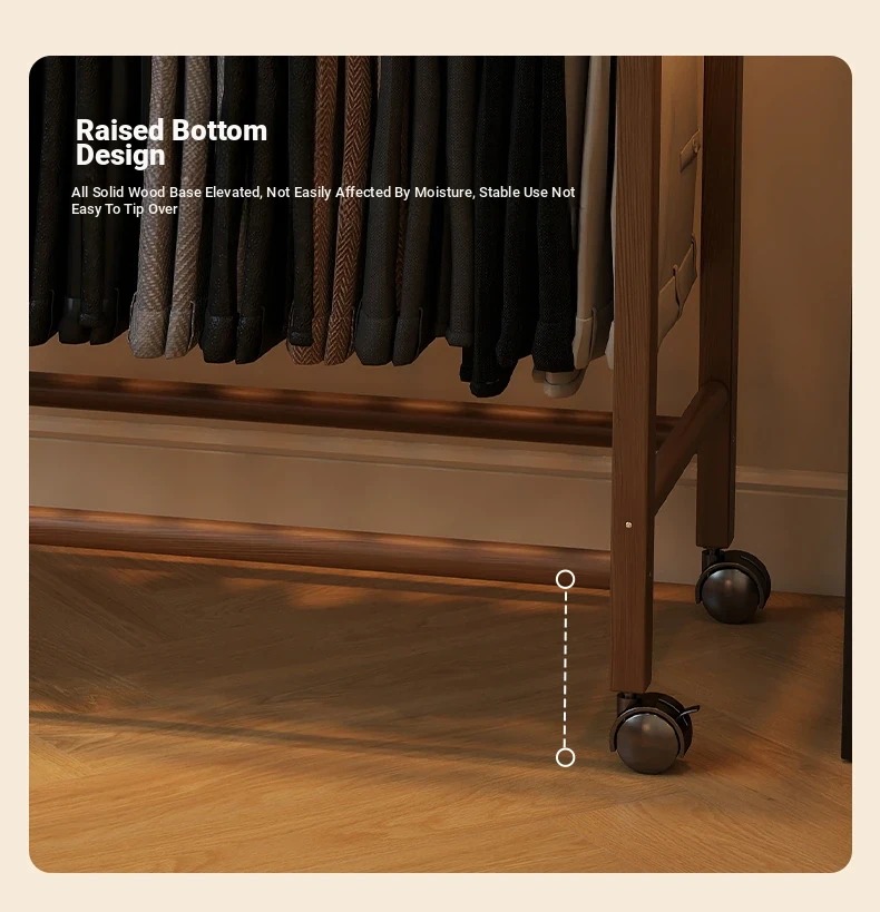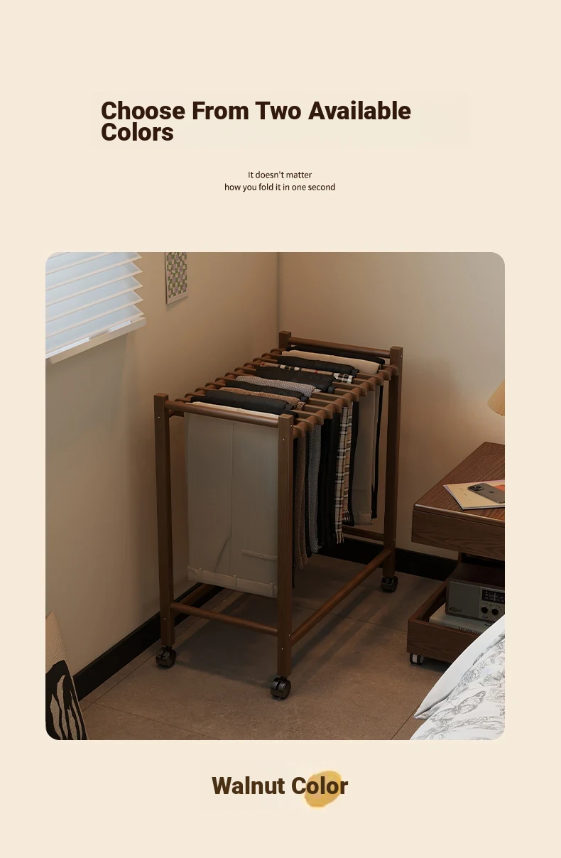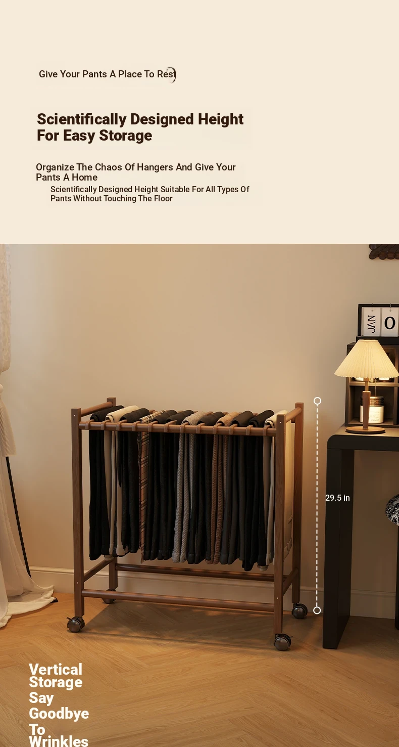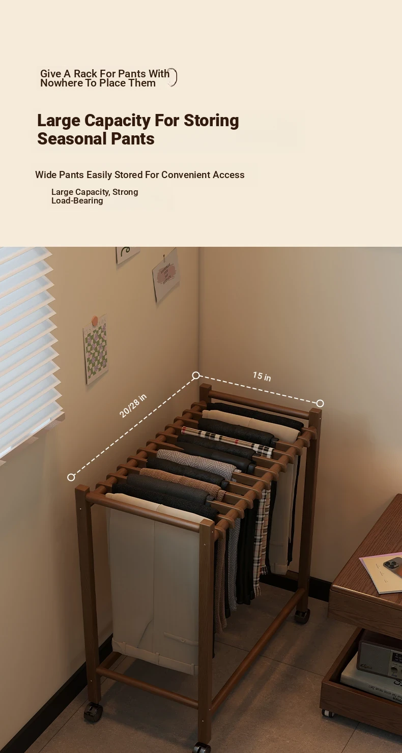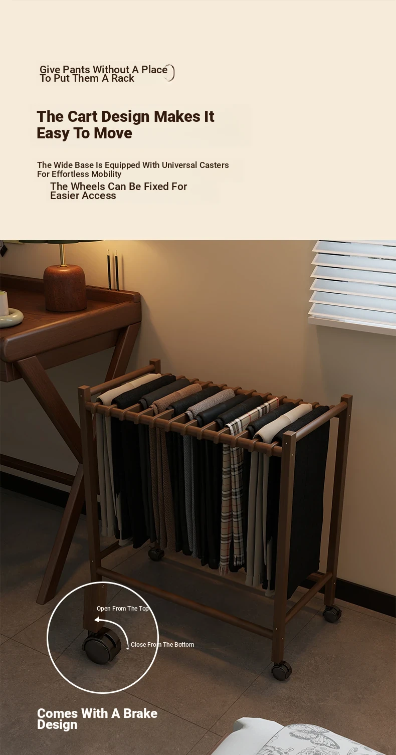 Portable Solid Wood Multi-Functional Clothes Rack with Wheels - No Trace Design for Bedroom, Ideal for Hanging and Organizing Pants, Perfect Home Drying Solution!