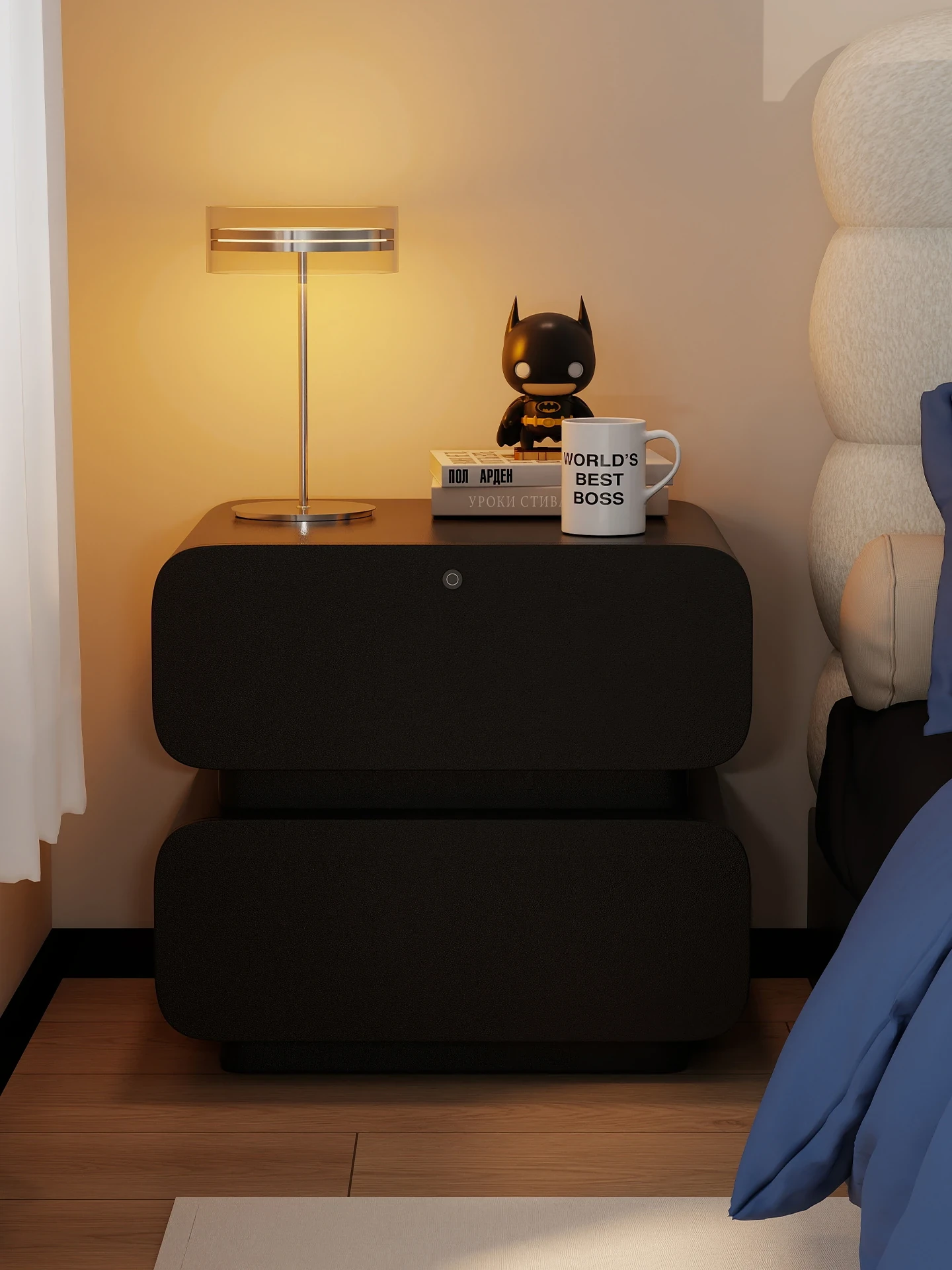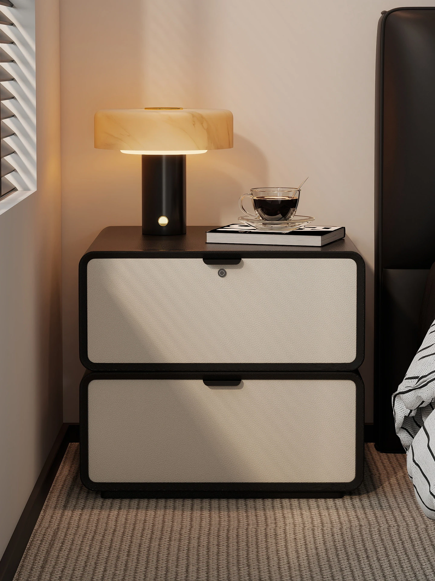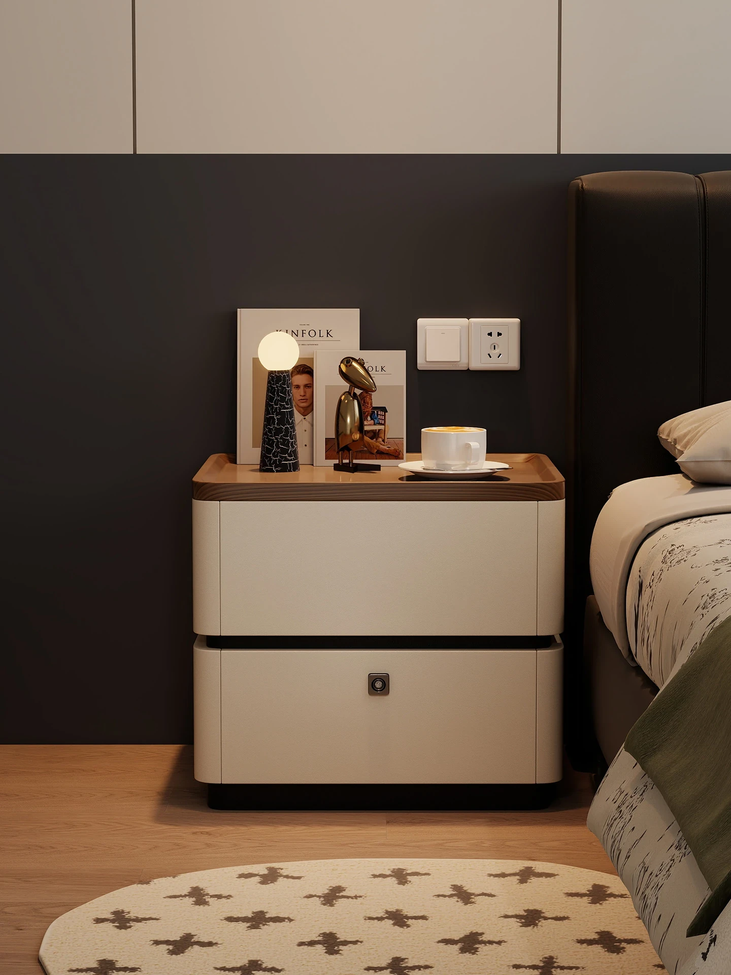 Smart Solid Wood Bedside Table with Lock - Italian Minimalist Design 2025 New Luxury Collection, Fingerprint Lock & Storage Cabinet for a Chic Bedroom