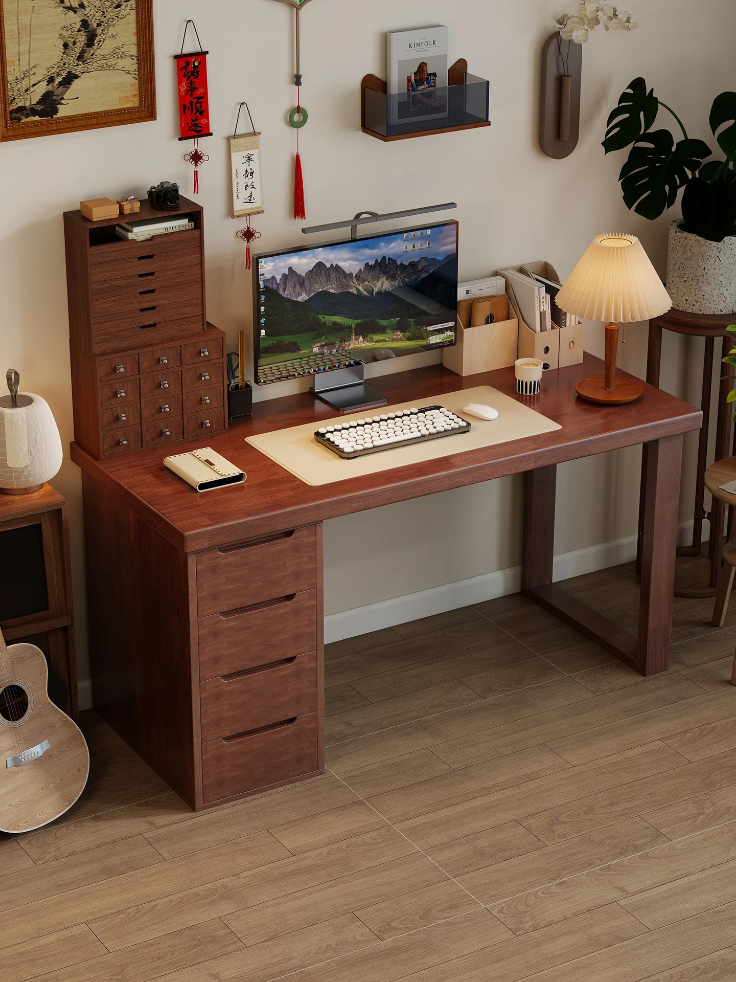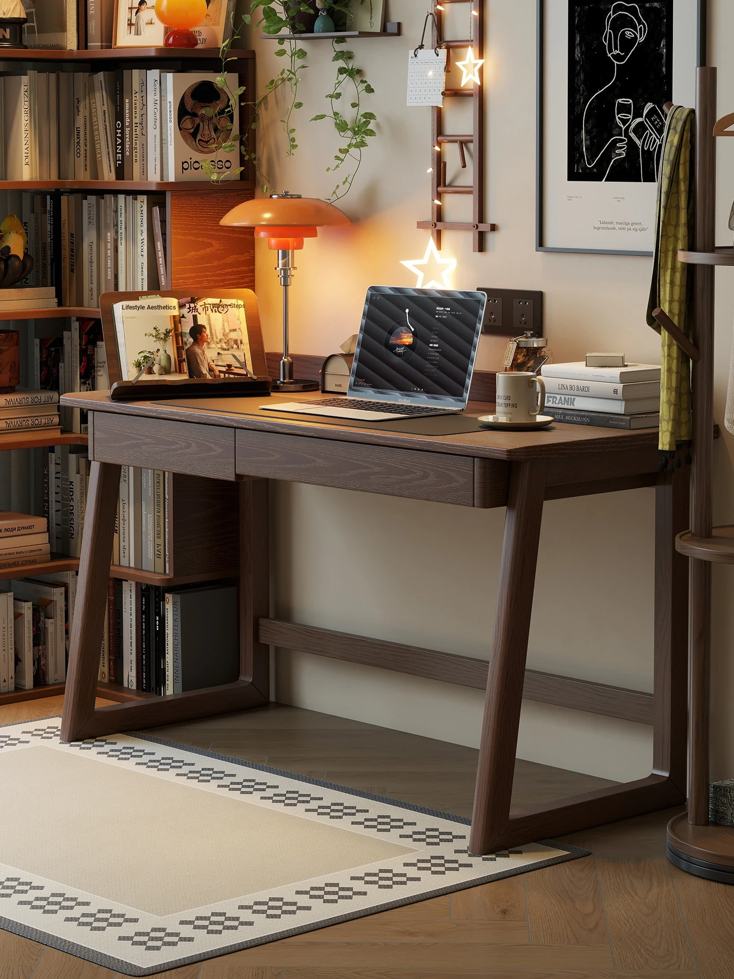 Vintage Solid Wood Writing Desk with Drawer - Simple Modern Computer Table for Home, Retro Elegant Double Office Workstation