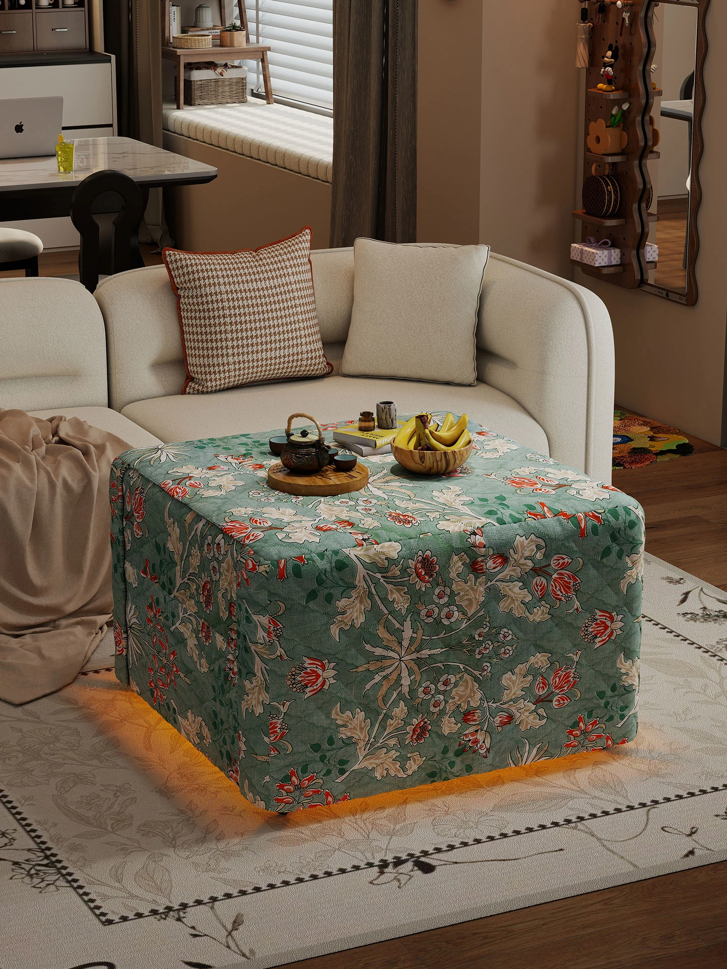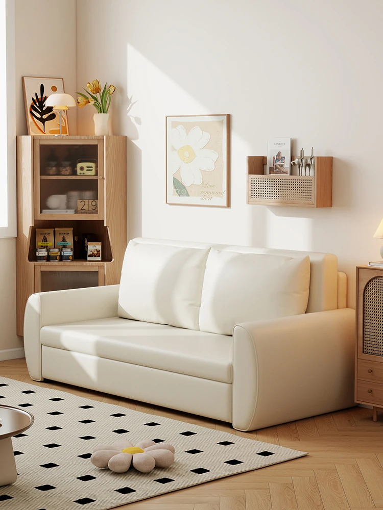 Modern Multifunctional Sofa Bed for Living Room & Bedroom - Creamy Style, Space-Saving Design, Perfect for Small Apartments, with Storage and Double Seating Capacity