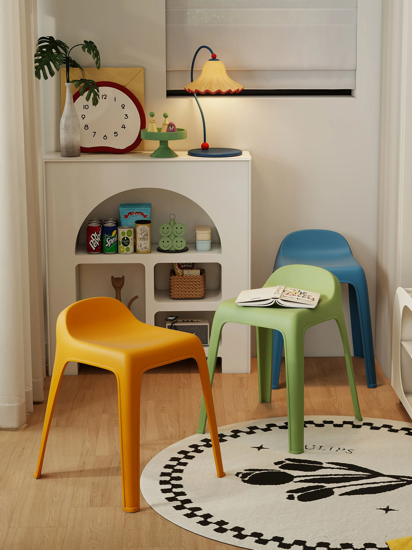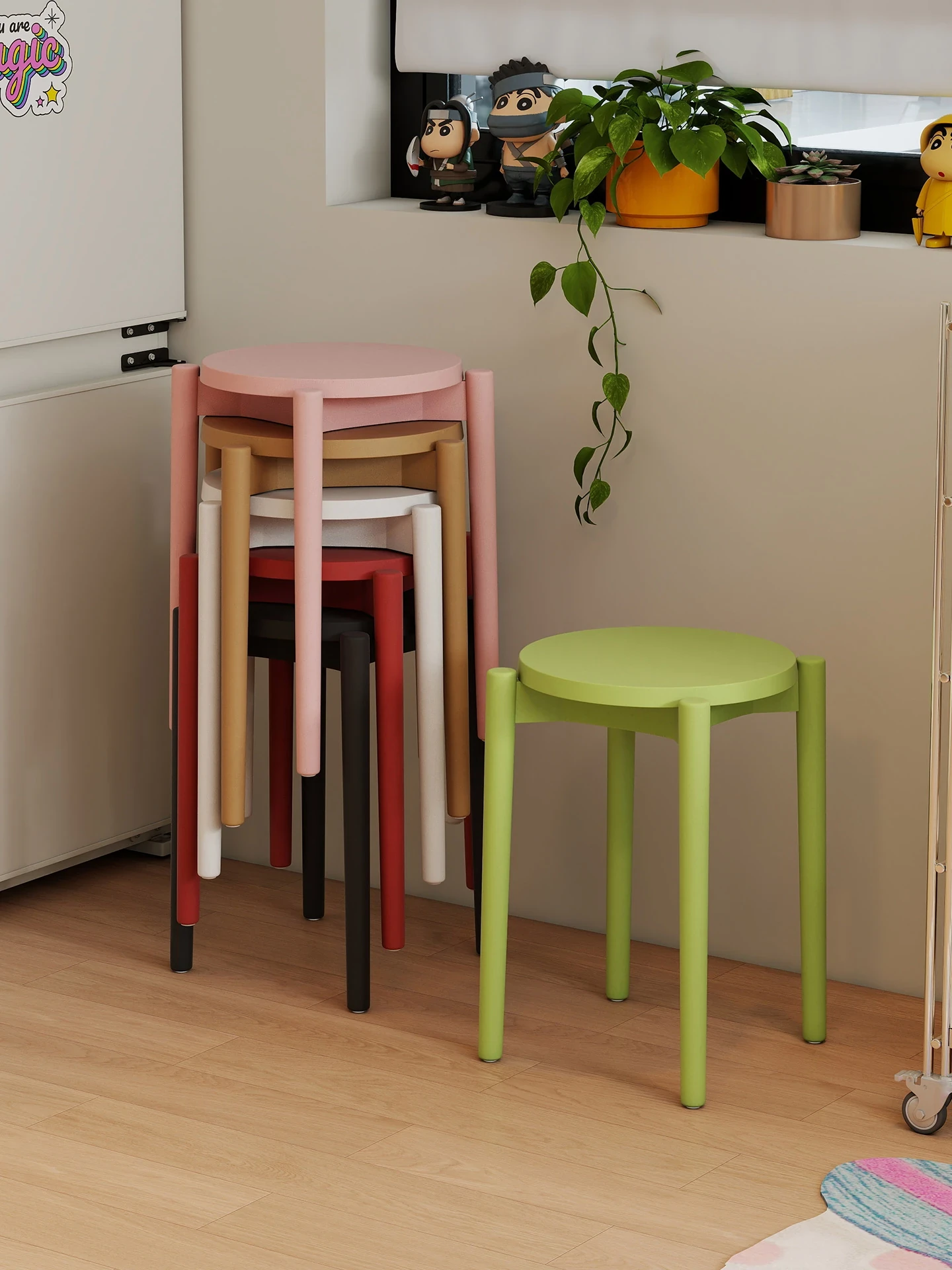 Durable Thickened Plastic Stool for Home Use - Stackable and Sturdy, Perfect as Extra Seating for Guests, Round Design Ideal for Dining Tables, Dopamine Colorful Options Available