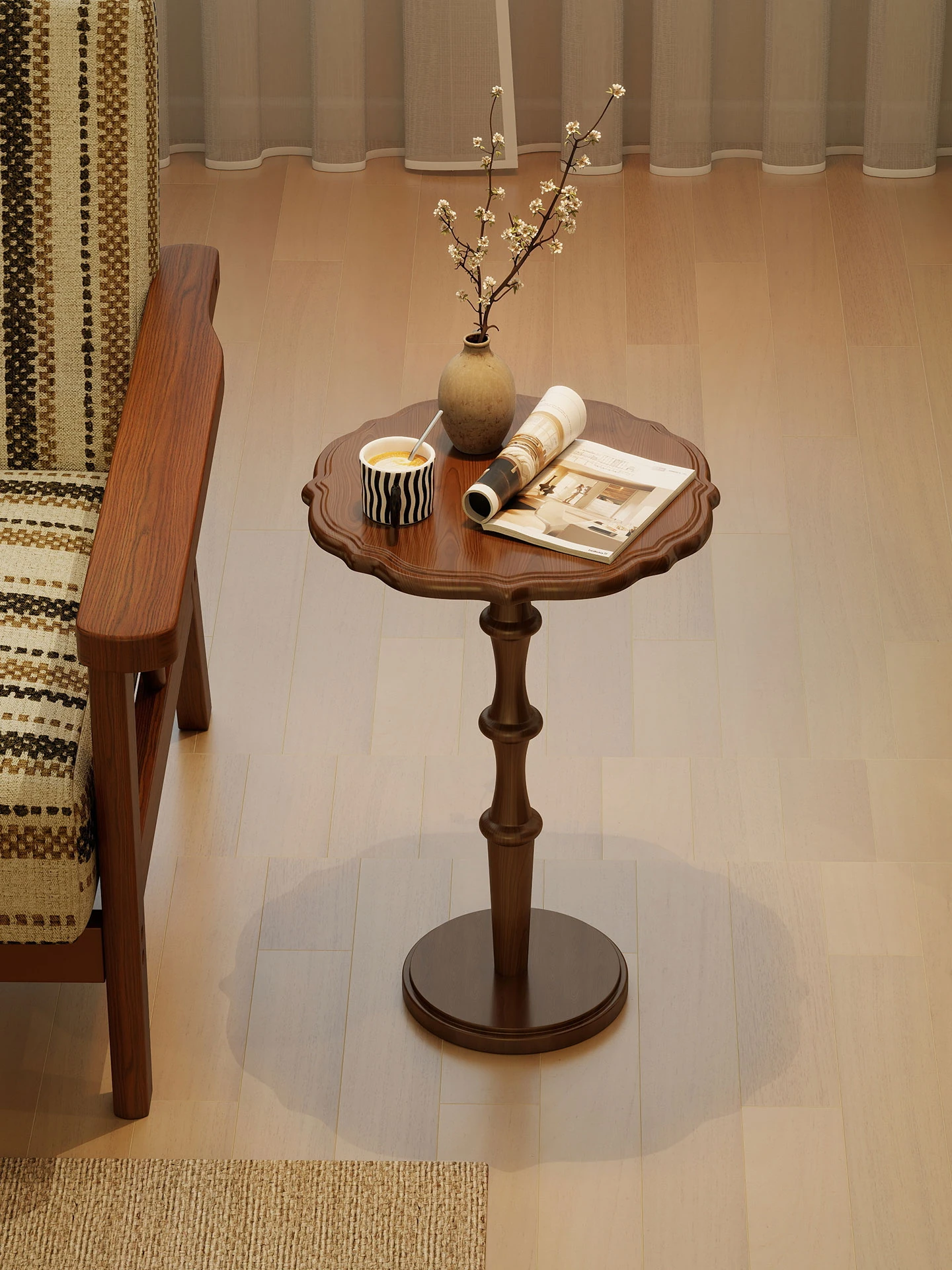 Vintage Solid Wood Small Coffee Table for Small Living Rooms - French Antique Lace Design Creative Corner Side Table, Perfect for Sofas and Cozy Spaces
