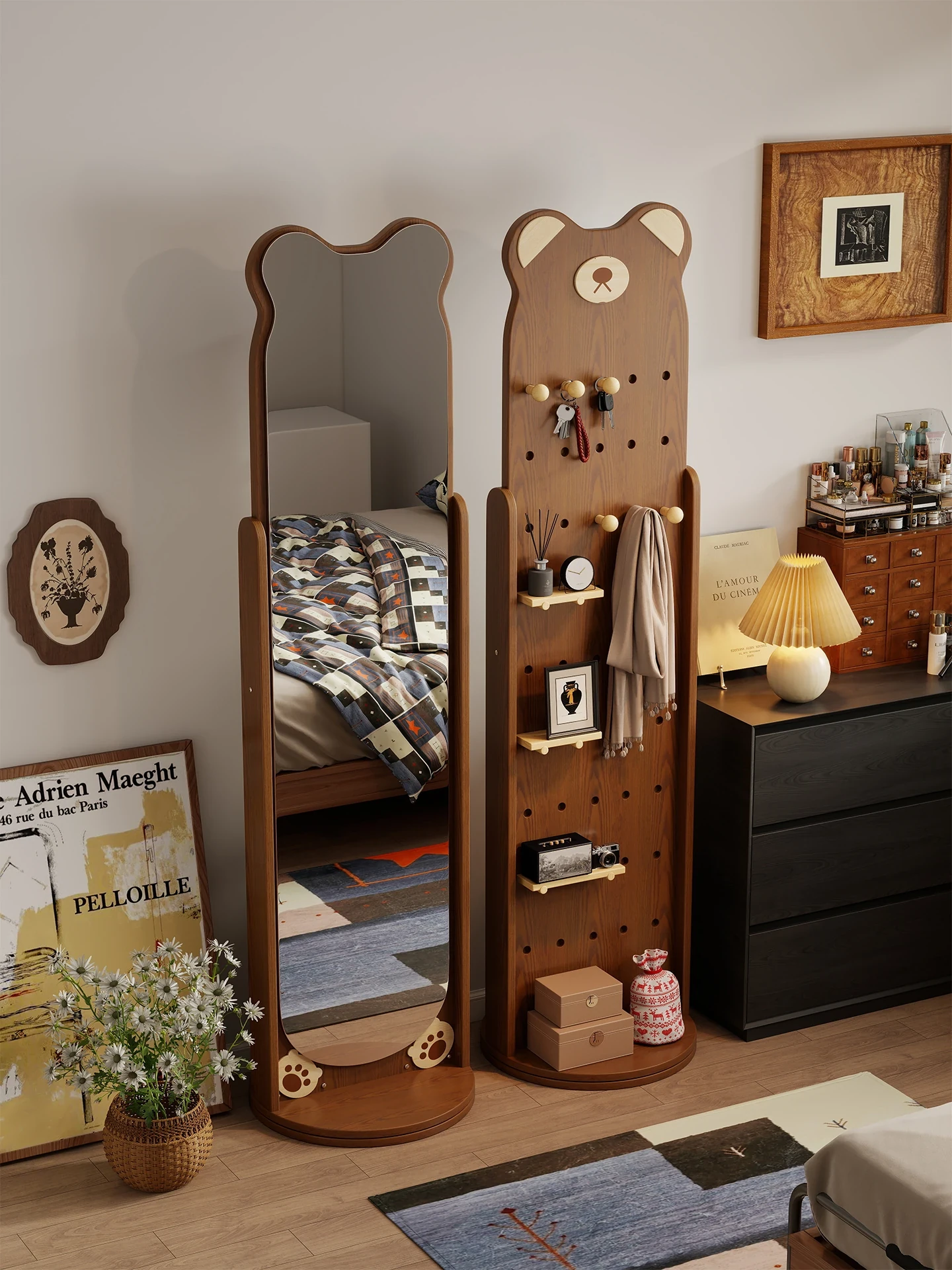 Bear Hole Full-Length Rotating Mirror and Clothing Rack - Stylish Floor Mirror and Dressing Mirror for Home Use, Perfect for Bedrooms and Fitting Rooms