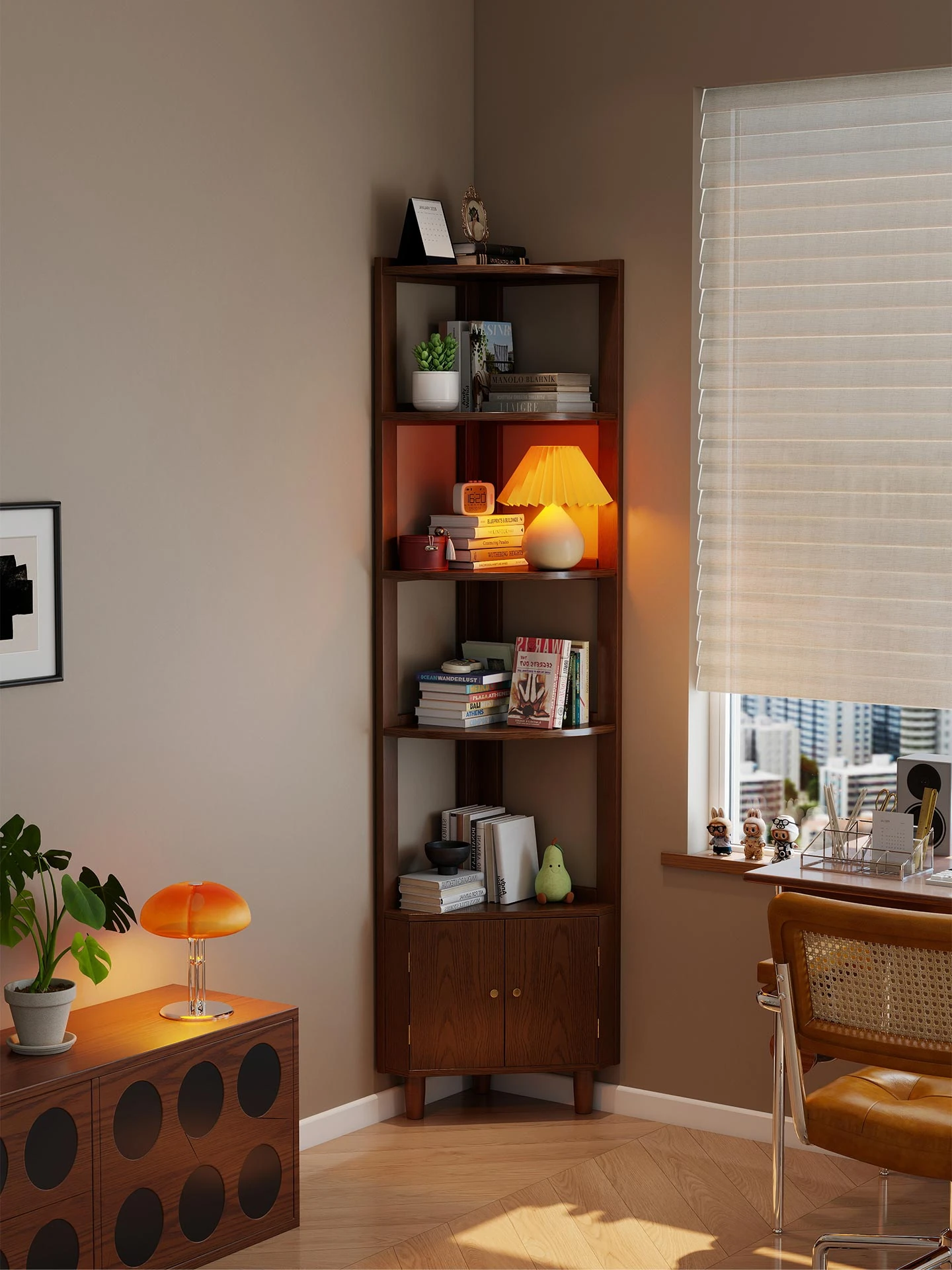 Solid Wood Corner Cabinet - Stylish Multi-Layer Storage Shelf for Living Room, Bedroom, and Home Office - Perfect for Small Spaces and Corner Use, Chinese Style Design.