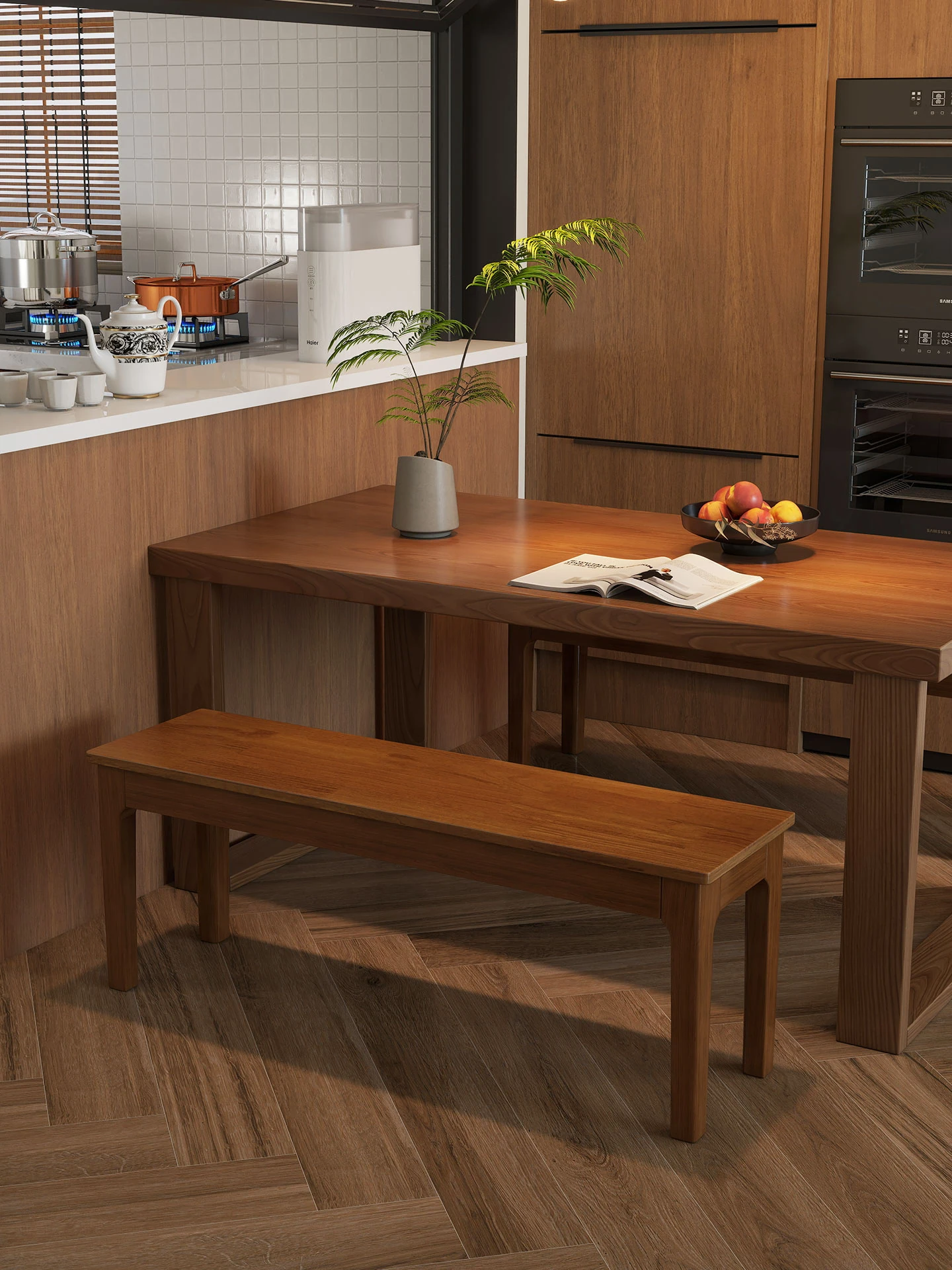 Solid Wood Long Bench - Walnut Color Dining Table Bench for Home, Perfect for Dining Rooms, Bedroom End of Bed, and Entryway Shoe Changing Bench. Stylish and Versatile Seating Solution!