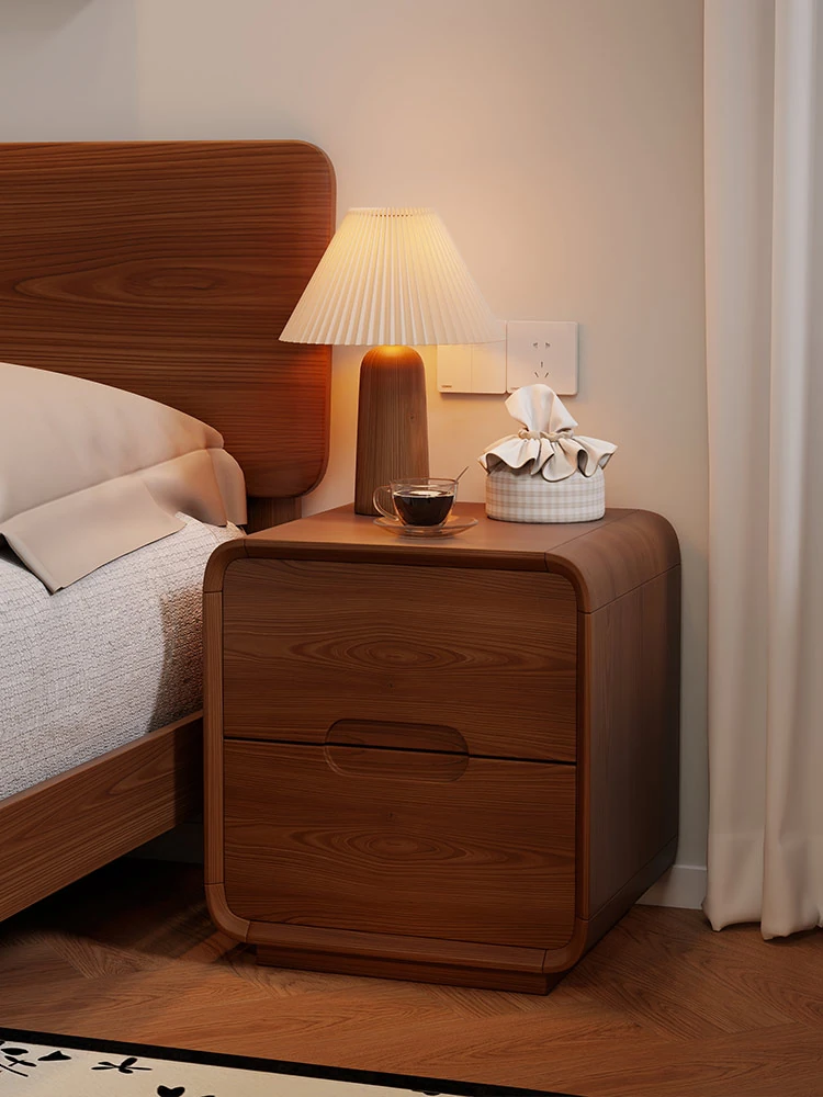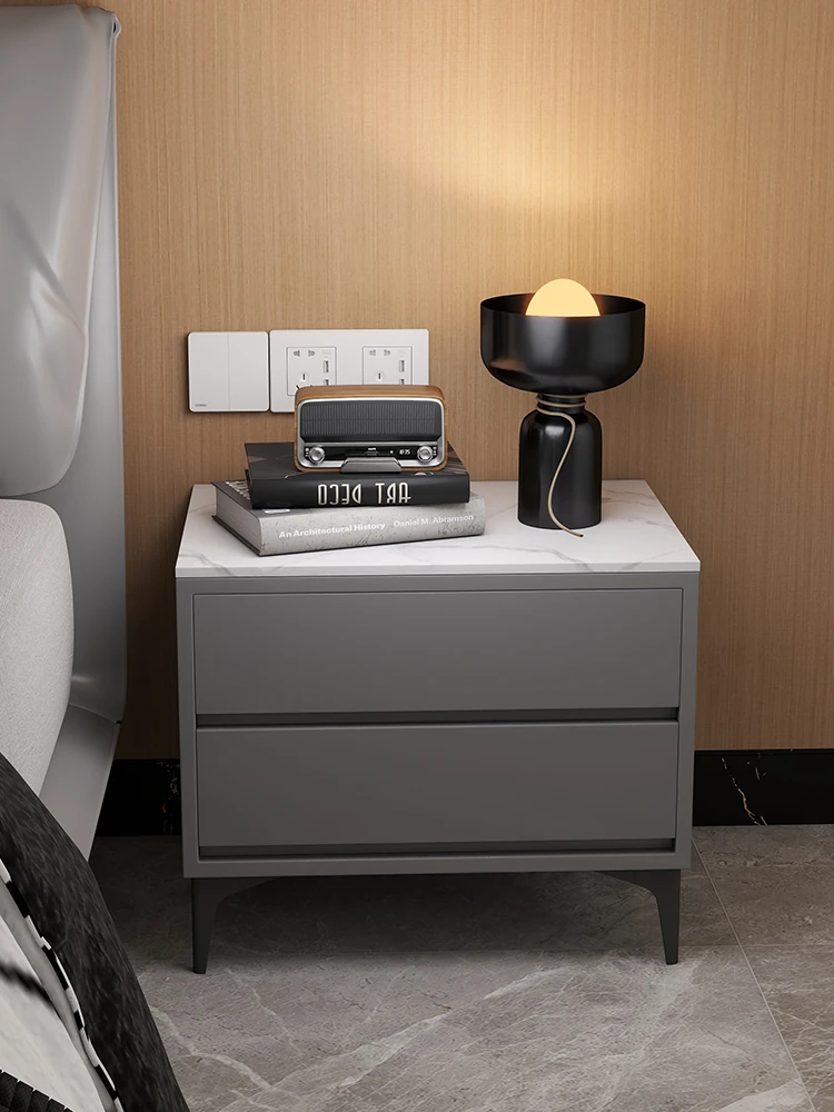 Elegant Minimalist Solid Wood Nightstand with Rock Panel - Stylish Small Bedside Storage Cabinet for Bedroom, Perfect for Modern Luxury Homes