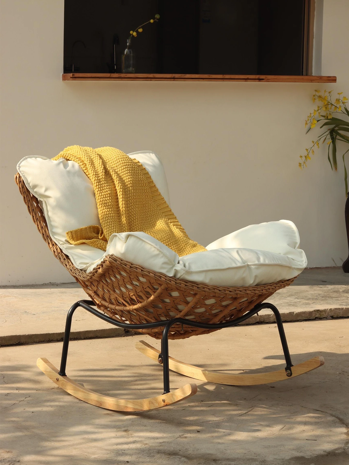 Comfortable Rattan Rocking Chair - Perfect for Relaxation at Home or Outdoors, Ideal for Balconies and Living Rooms, Stylish Lazy Sofa for Adults, Trendy Design for Modern Spaces