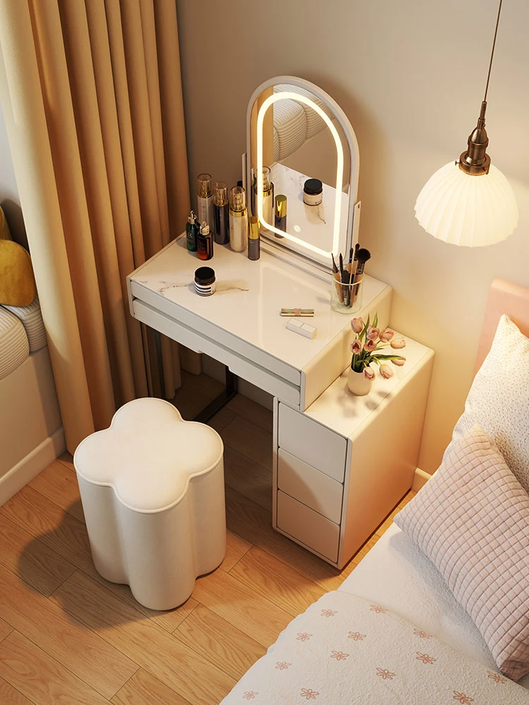 Modern 80CM Minimalist Dressing Table with Integrated Smart Makeup Desk & Mirror for Small Bedrooms - Stylish and Space-Saving Solution for Your Master Bedroom