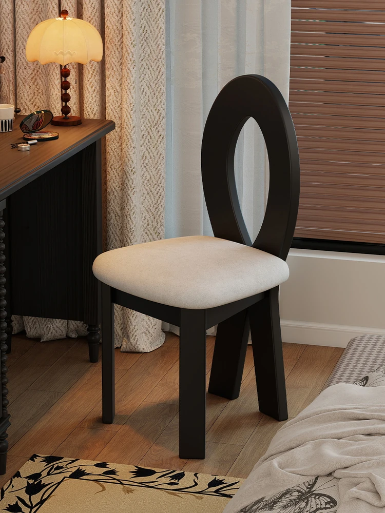 French Solid Wood Vanity Stool - Elegant Vintage Mermaid Chair for Bedroom, Designer Makeup Chair, Perfect for Dressing Tables and Dining Areas.