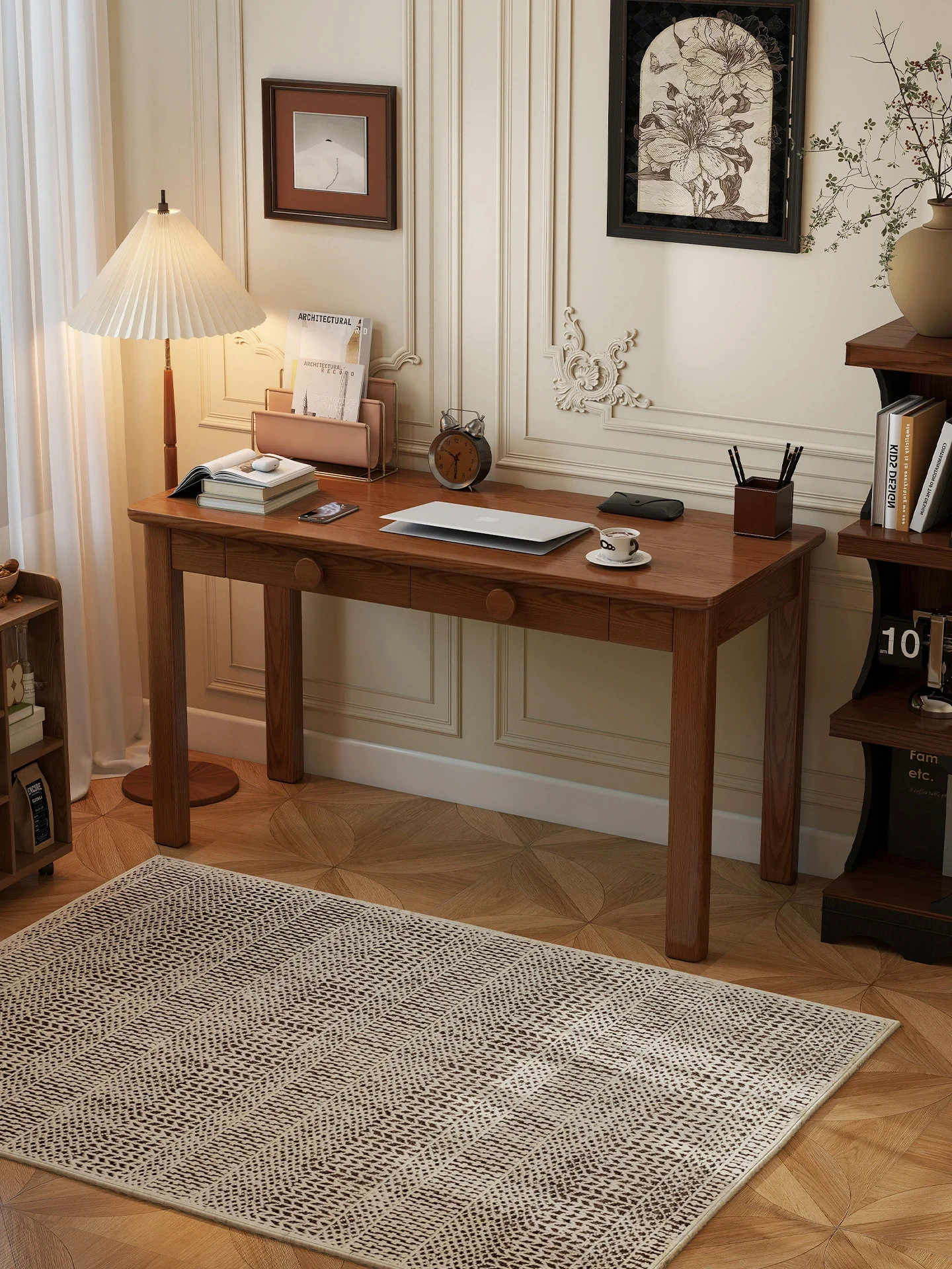Vintage Solid Wood Desk for Home and Bedroom - Elegant Computer and Office Table with Two Easy-Access Drawers, Perfect for Study or Bedside Use.