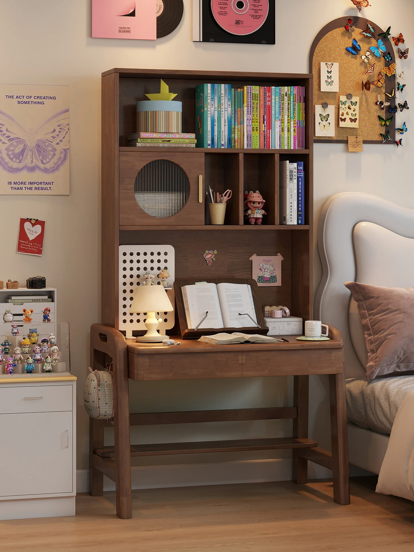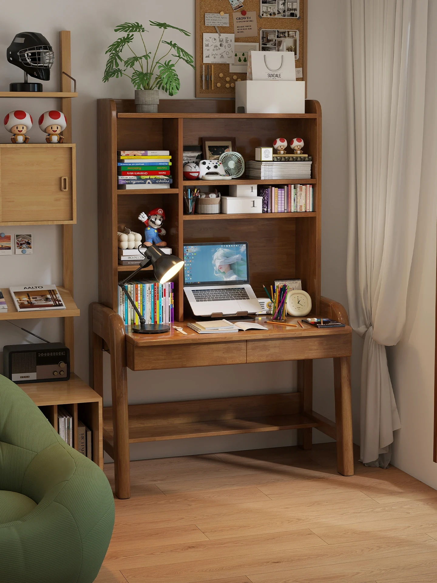 Adjustable Solid Wood Desk and Bookshelf Combo - Perfect for Home, Student, or Office Use! Ideal for Bedroom Study and Computer Work.