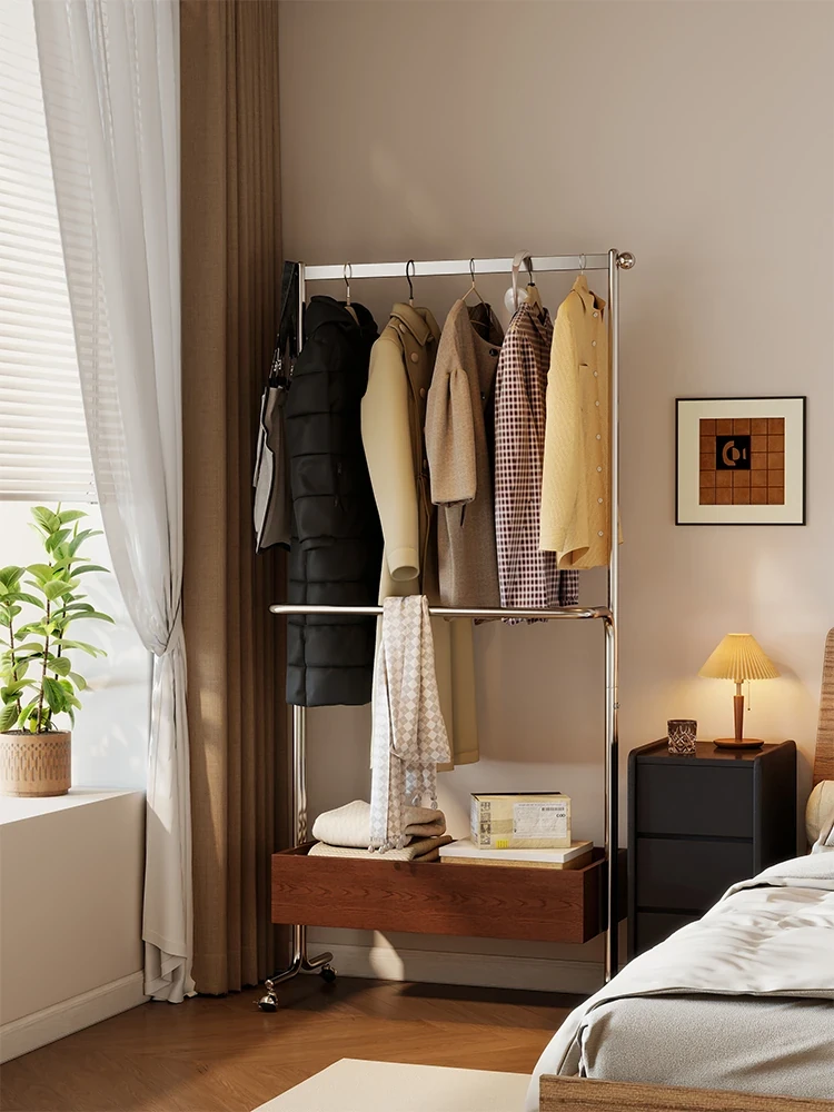 Vintage-Inspired Portable Stainless Steel Coat Rack for Bedroom and Living Room – Stylish Floor Hanger for Clothes and Accessories, Perfect for Bedside Storage