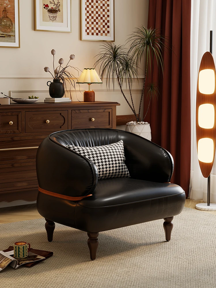 Chic Single Sofa Chair - Vintage American Style Designer Armchair for Living Room and Balcony, Retro-Inspired Lounge Chair for Ultimate Relaxation