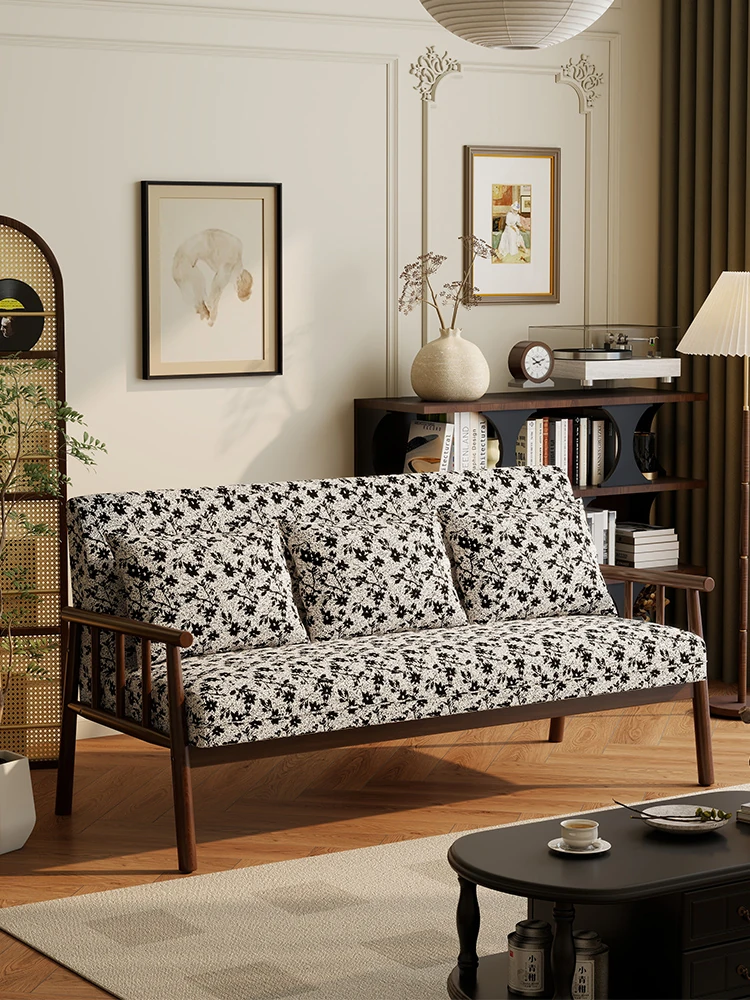 Vintage Solid Wood Sofa for Living Room - 2025 New Model, Perfect for Small Spaces, 3-Seater Upholstered Sofa for Bedrooms and Retail Stores