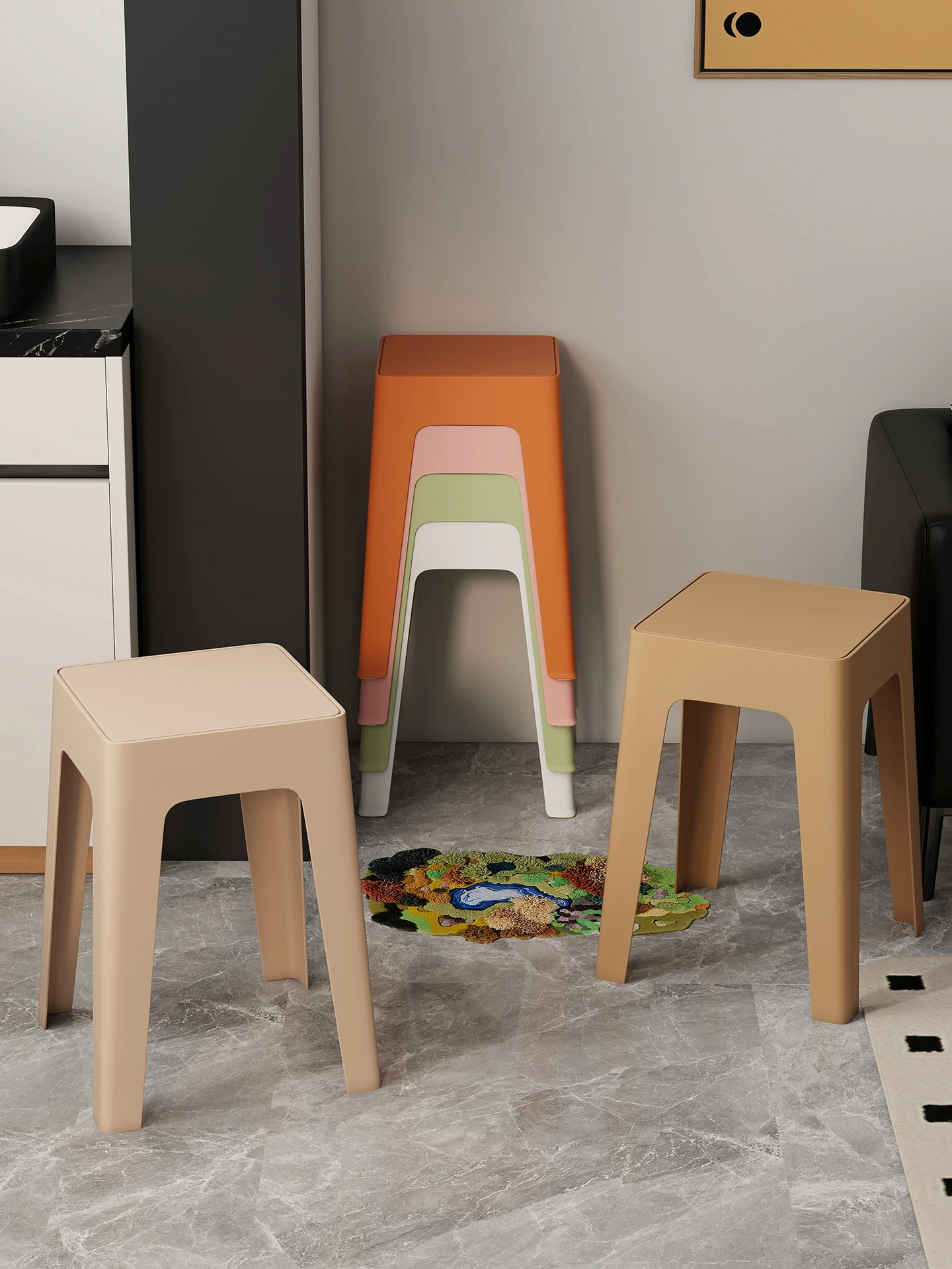 Thickened Plastic Stool for Home – Modern Stackable High Stool, Durable and Minimalist Design for Living Room and Dining Area