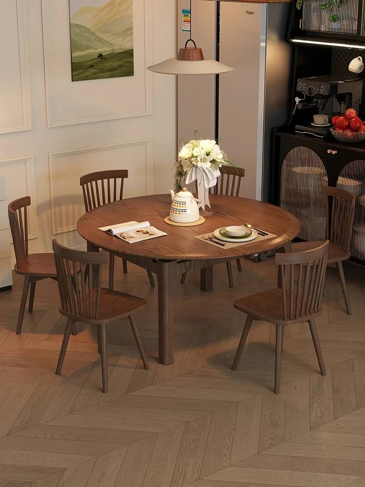 Compact Solid Wood Folding Round Dining Table - Perfect for Small Spaces, New Chinese Style, Space-Saving Design for Home Use
