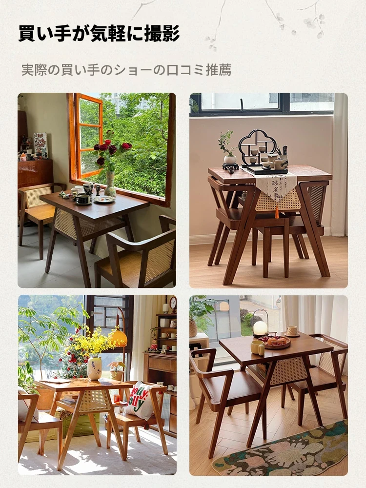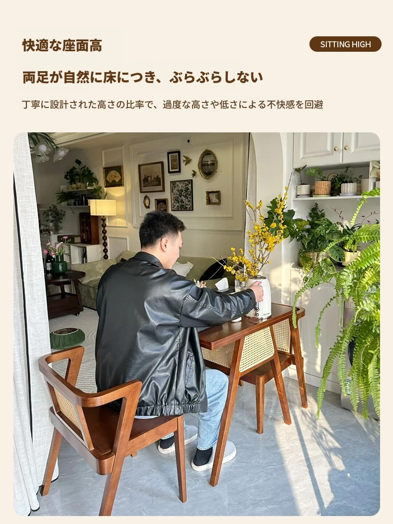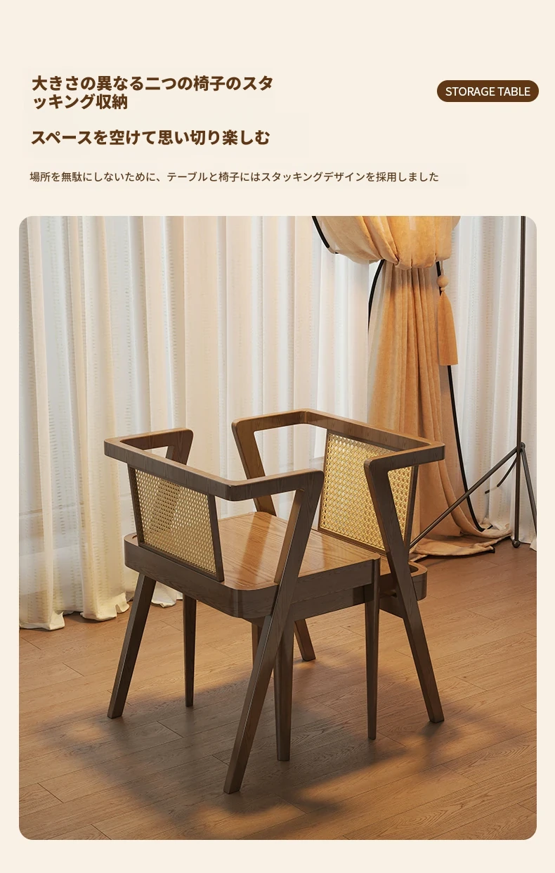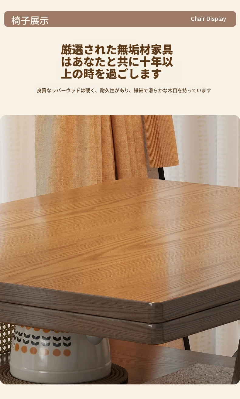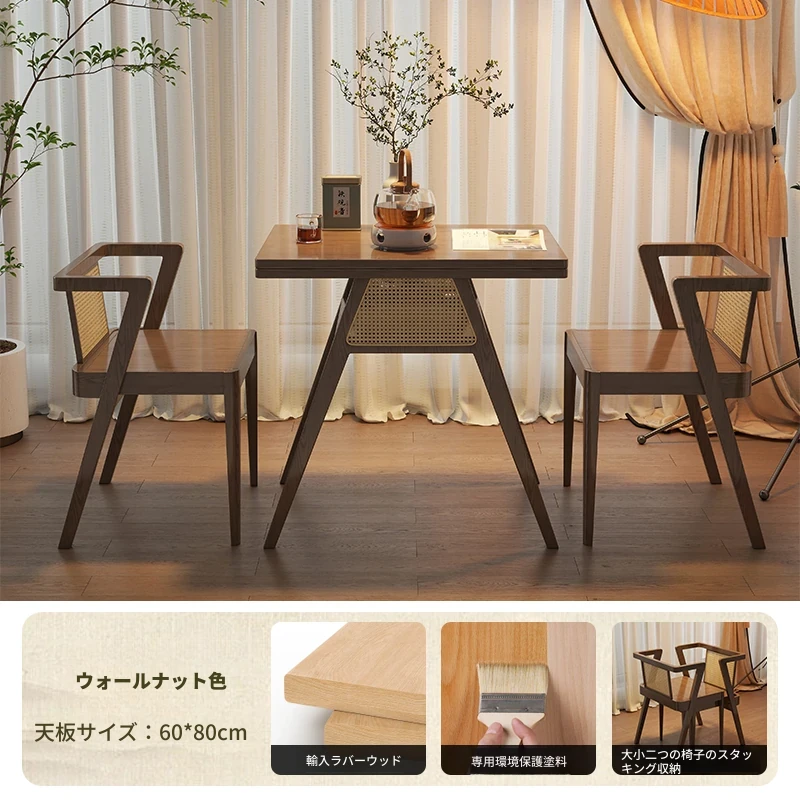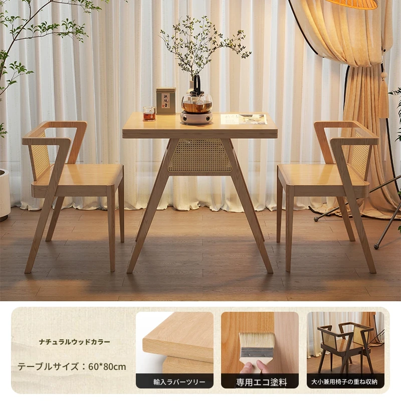 ナチュラル色-輸入ラバーウッド【一卓二椅子】