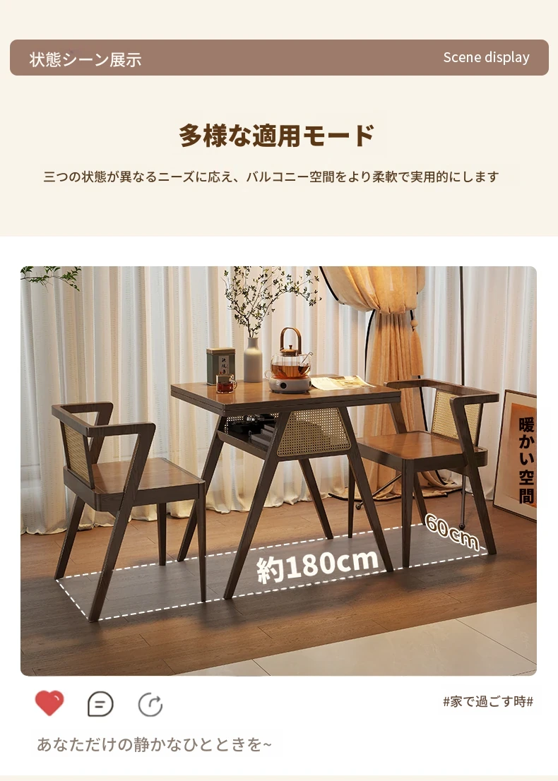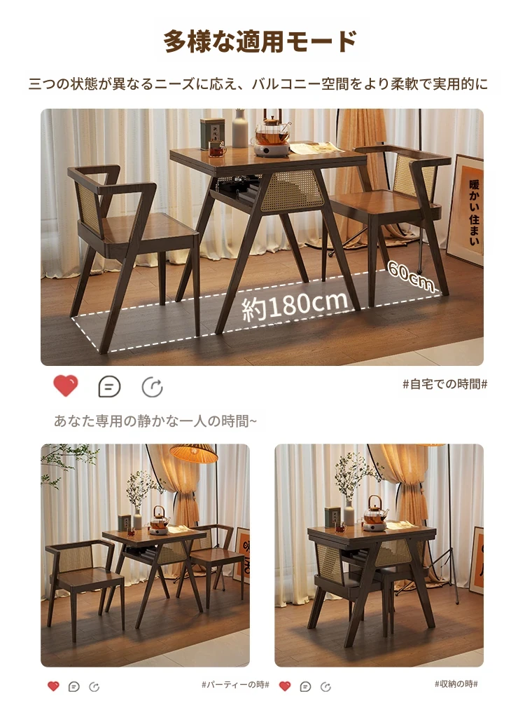 バルコニー用3点セット!モダンでシンプルなデザインの小さなティーテーブルとチェア。アウトドアや庭でのくつろぎのひとときを演出する、エレガントなラタン製。お茶を楽しむための完璧なアイテムです!
