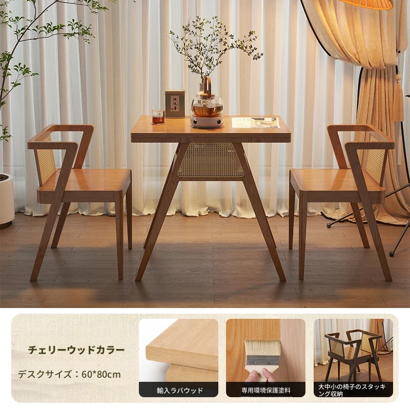 チェリー色-輸入ラバーウッド【一卓二椅子】