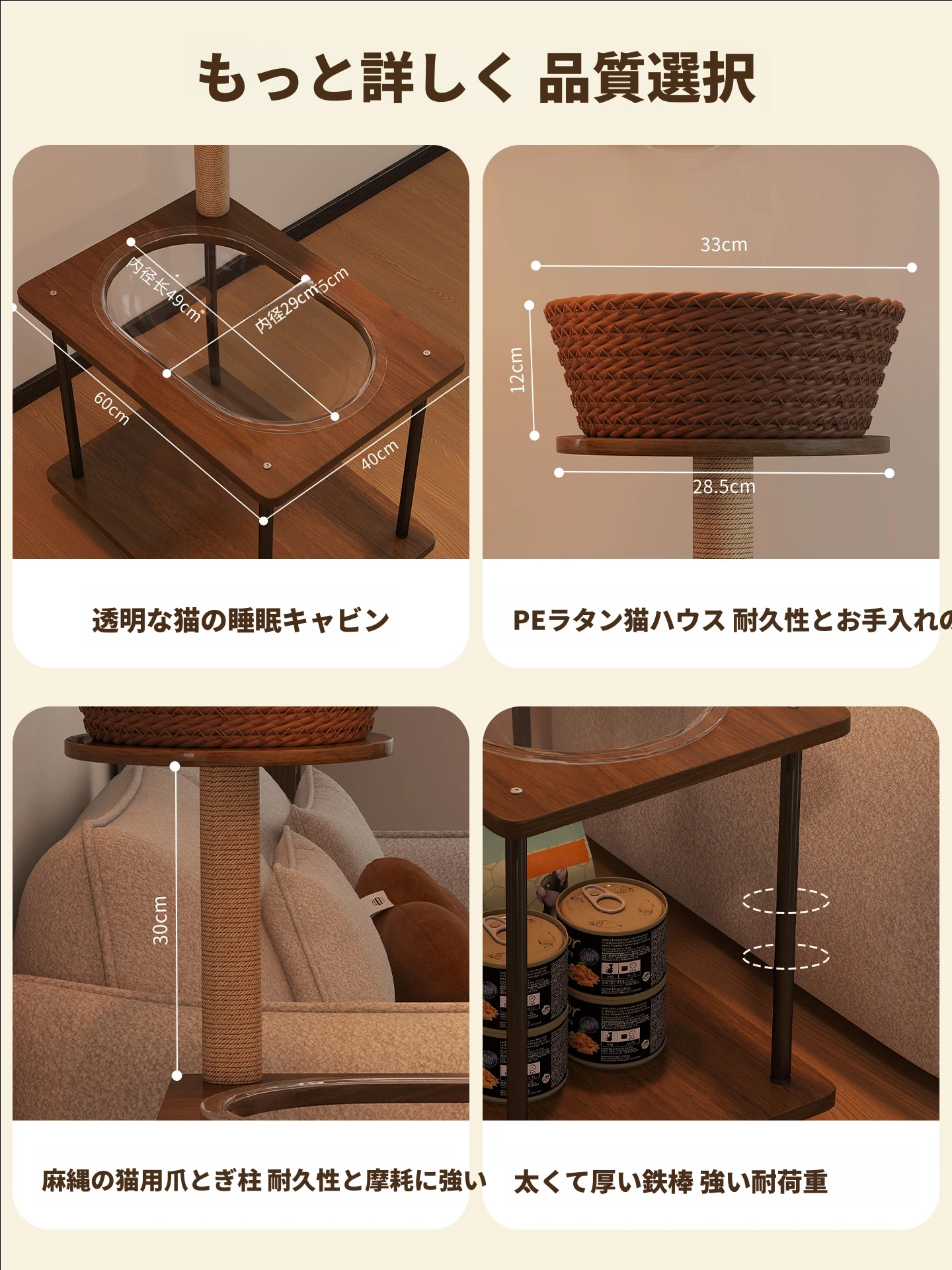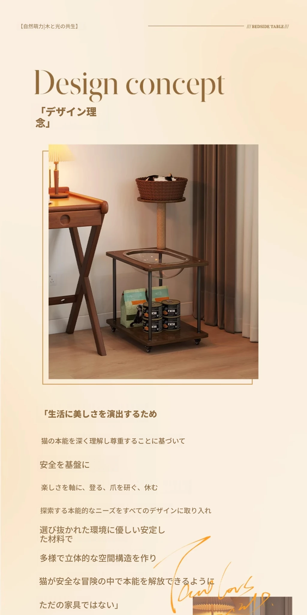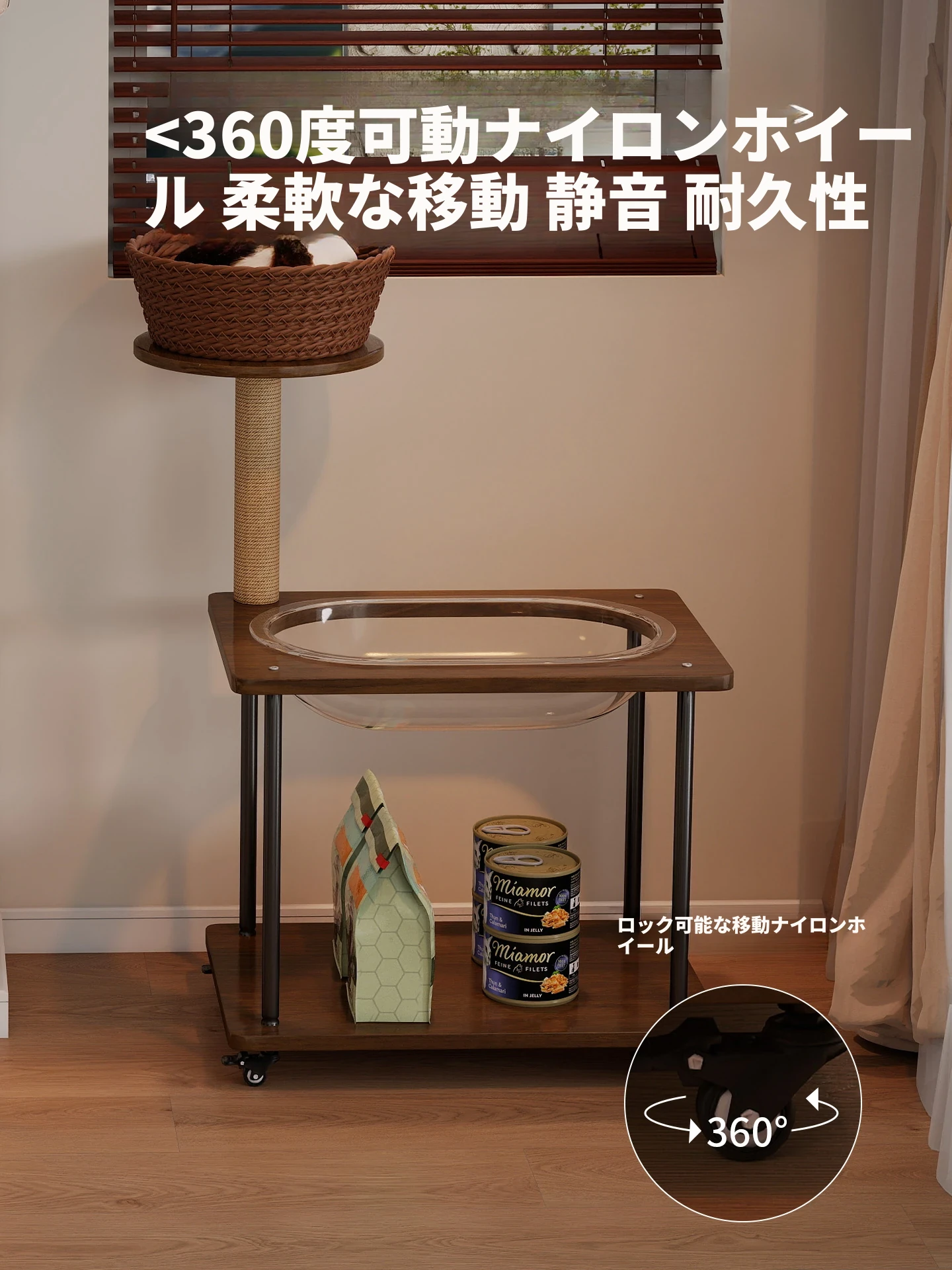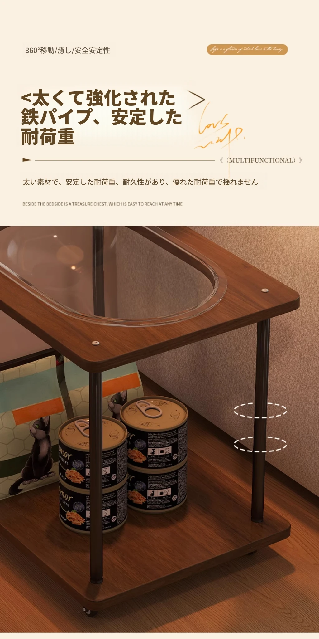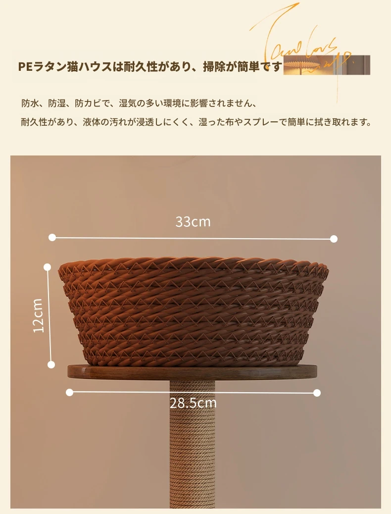 ペットと一緒に使える!コンパクトなサイドテーブル&キャットタワーがセットになった多機能キャットハウス。移動可能なキャビネット付きで、小スペースでも大活躍!猫ちゃんとの楽しい時間をお届けします。