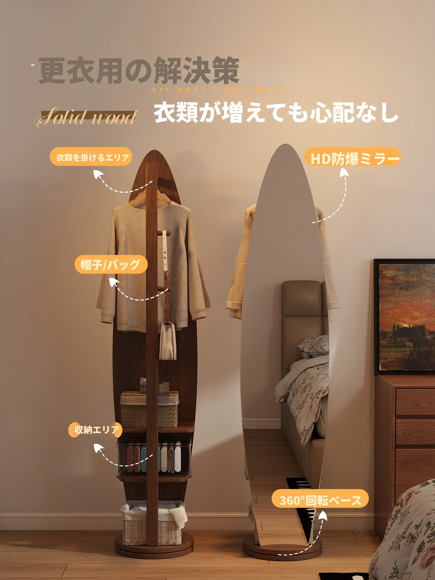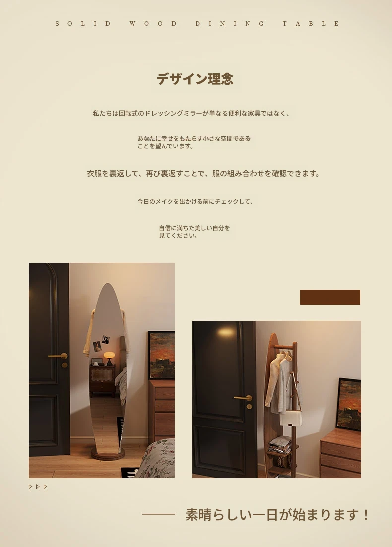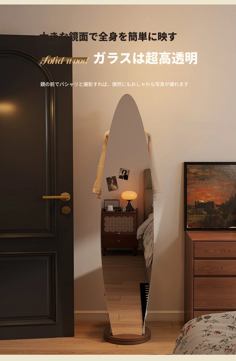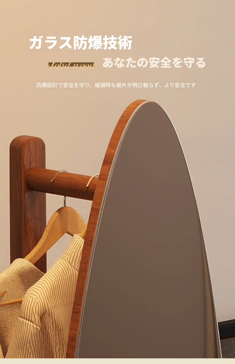 全身鏡スタンドミラー 家庭用寝室多機能試着鏡 回転式ハンガー付き一体型 全身コーディネートミラー