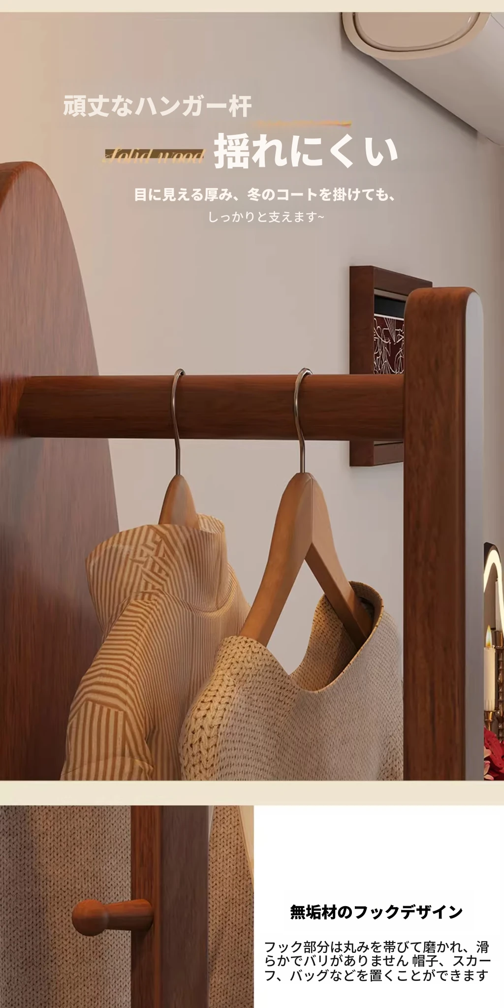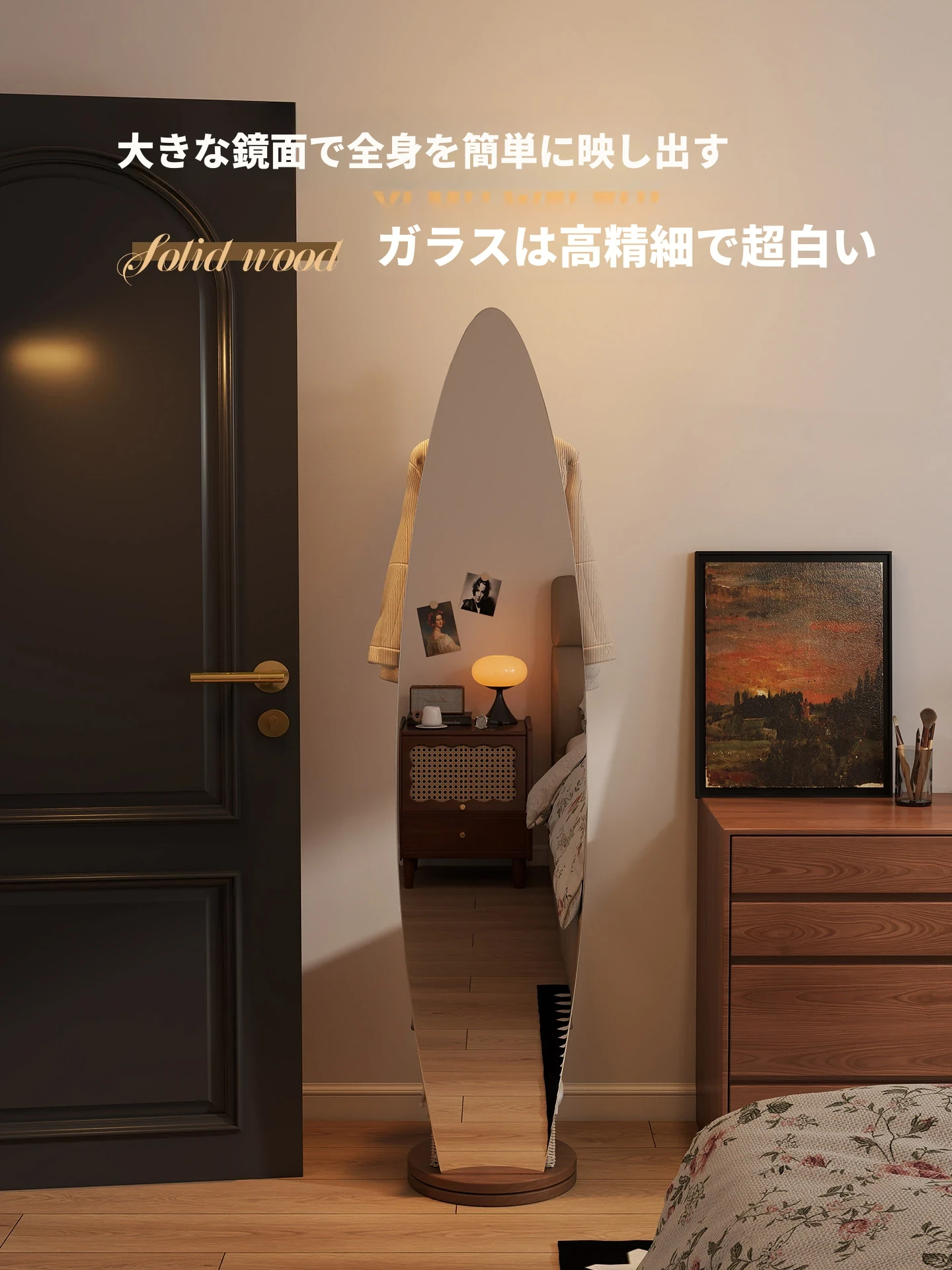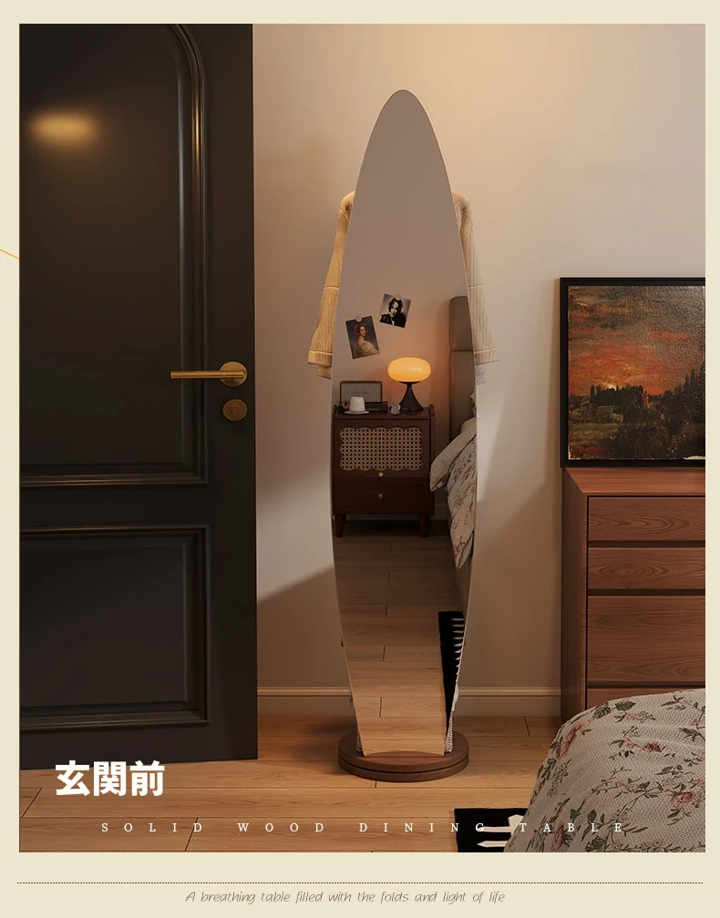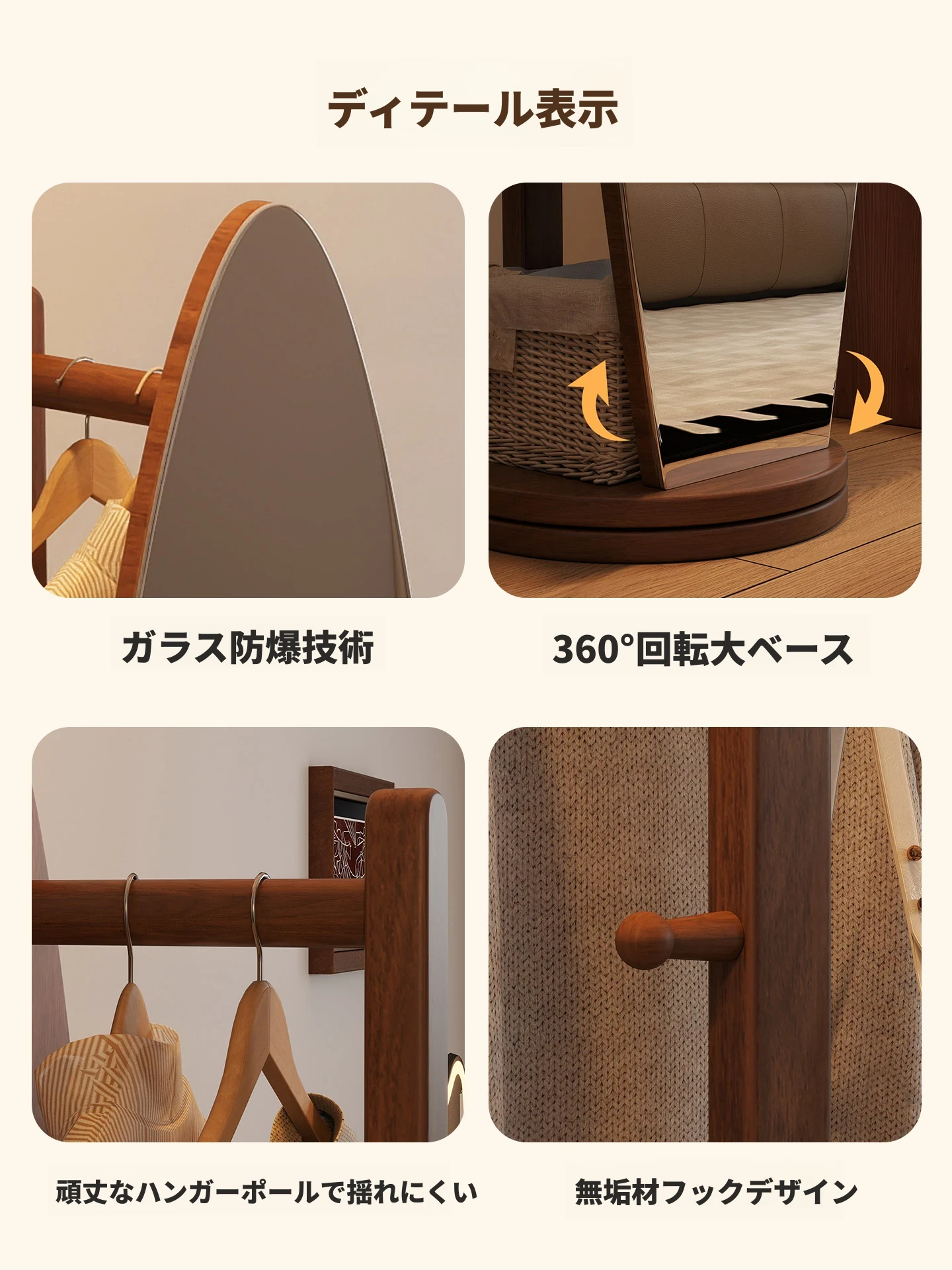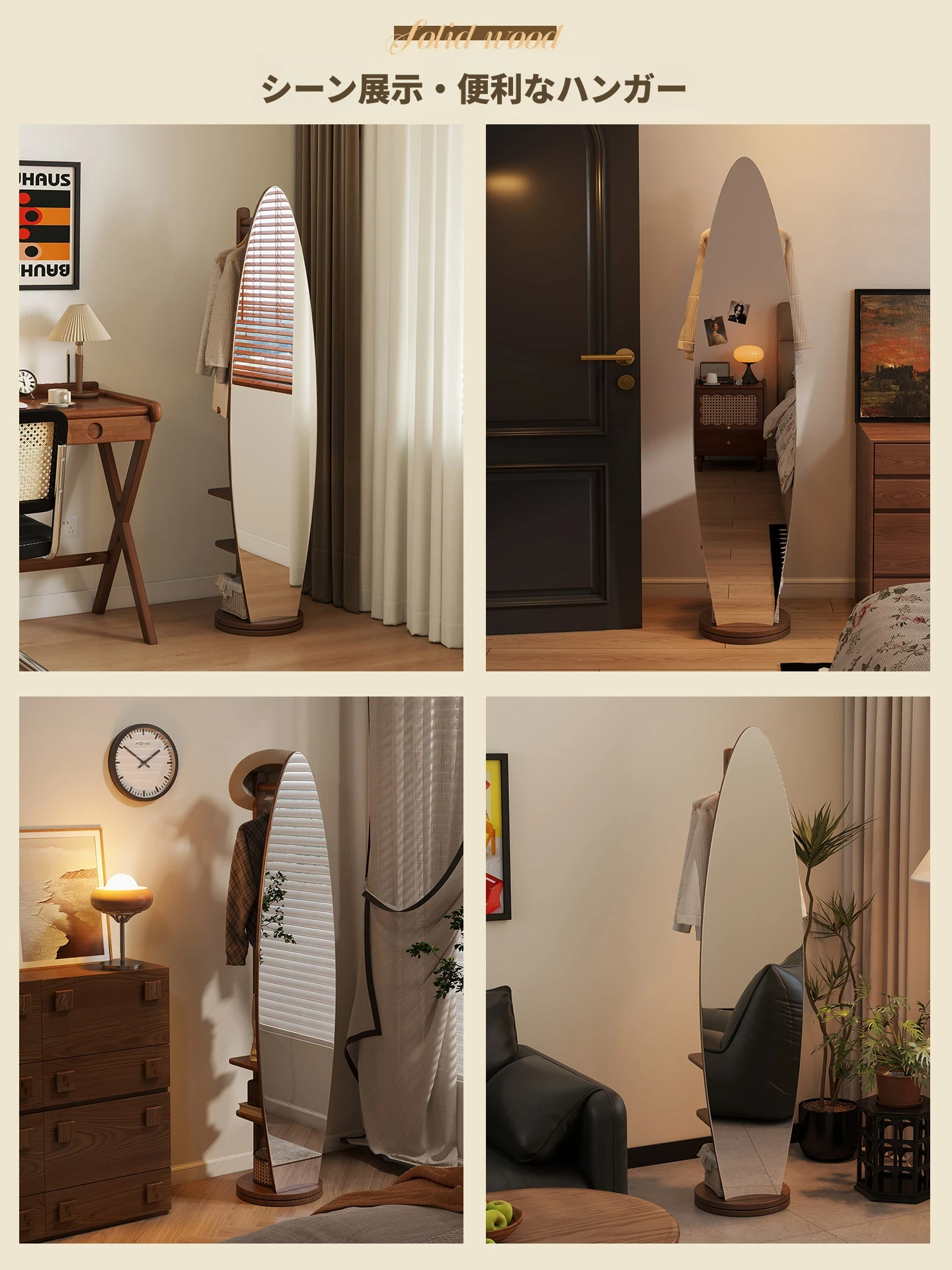 全身鏡スタンドミラー 家庭用寝室多機能試着鏡 回転式ハンガー付き一体型 全身コーディネートミラー