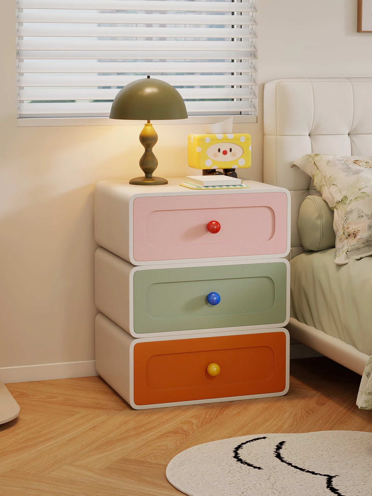Creative Two-Tone Solid Wood Nightstand - Stylish Cream Bedroom Bedside Cabinet for Kids - Premium Compact Storage Solution for Your Bedroom