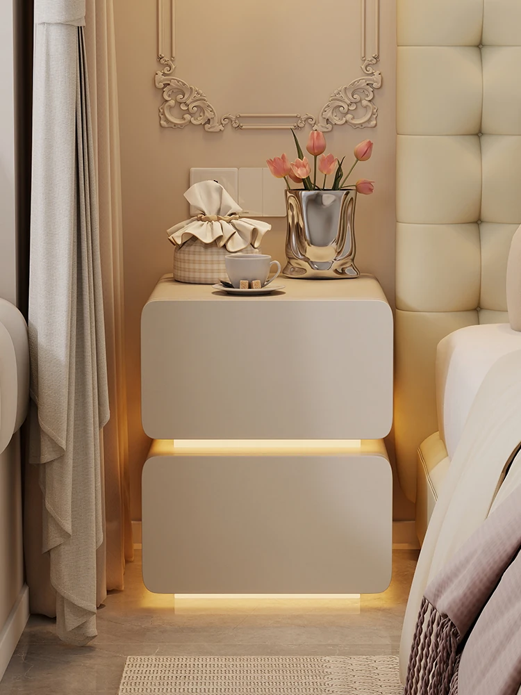 Modern Minimalist Solid Wood Nightstand - Creamy Style Bedroom Storage Cabinet, 2025 New Bedside Organizer for Easy Storage