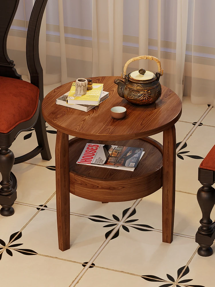Solid Wood Side Table - Vintage Casual Coffee Table for Living Room, Minimalist Design, Perfect for Small Spaces, Ideal Round Table for Sofas and Home Use