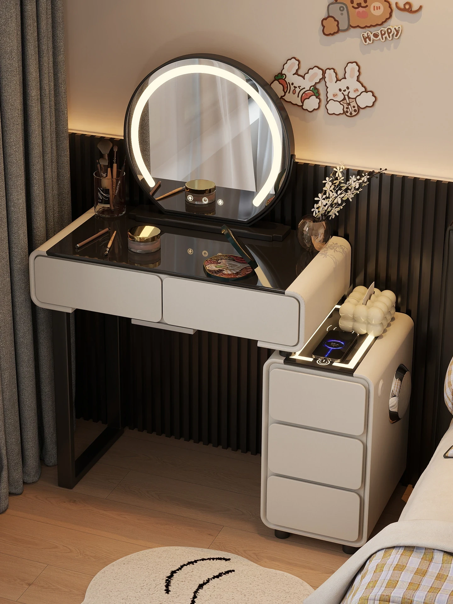 Smart Vanity Table with Integrated Wireless Charging – Elegant Bedroom Dresser and Makeup Station with Mirror, Multi-Functional Design for a Luxurious Touch in Your Space.