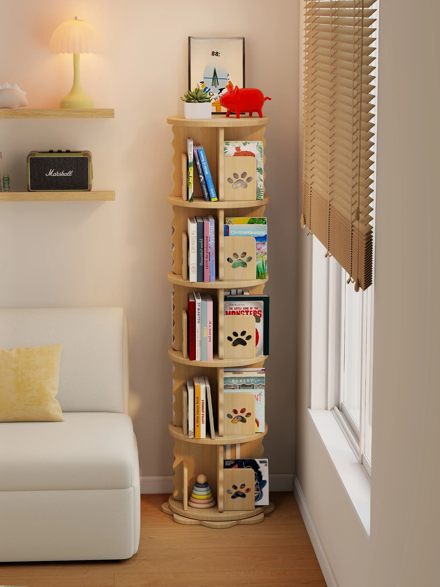 360-Degree Solid Wood Rotating Bookshelf - Multi-Layer Round Storage Rack for Living Room Corner, Perfect for Kids' Picture Books and Stylish Home Decor
