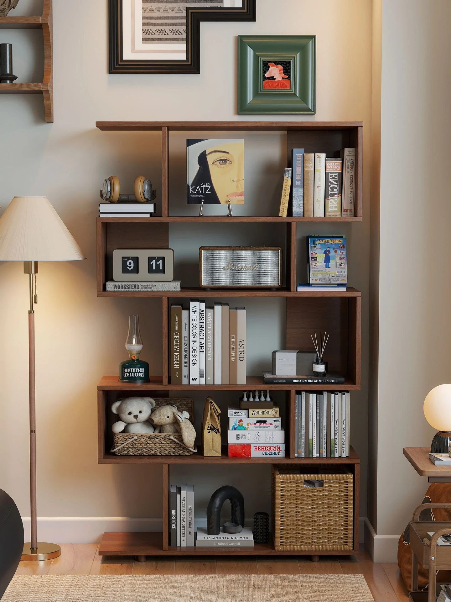 Solid Wood Bookshelf - Vintage Style Floor-standing Storage Rack for Living Room, Wall-mounted Bookcase with Multi-layer Shelving for Collectibles and Organizing Essentials