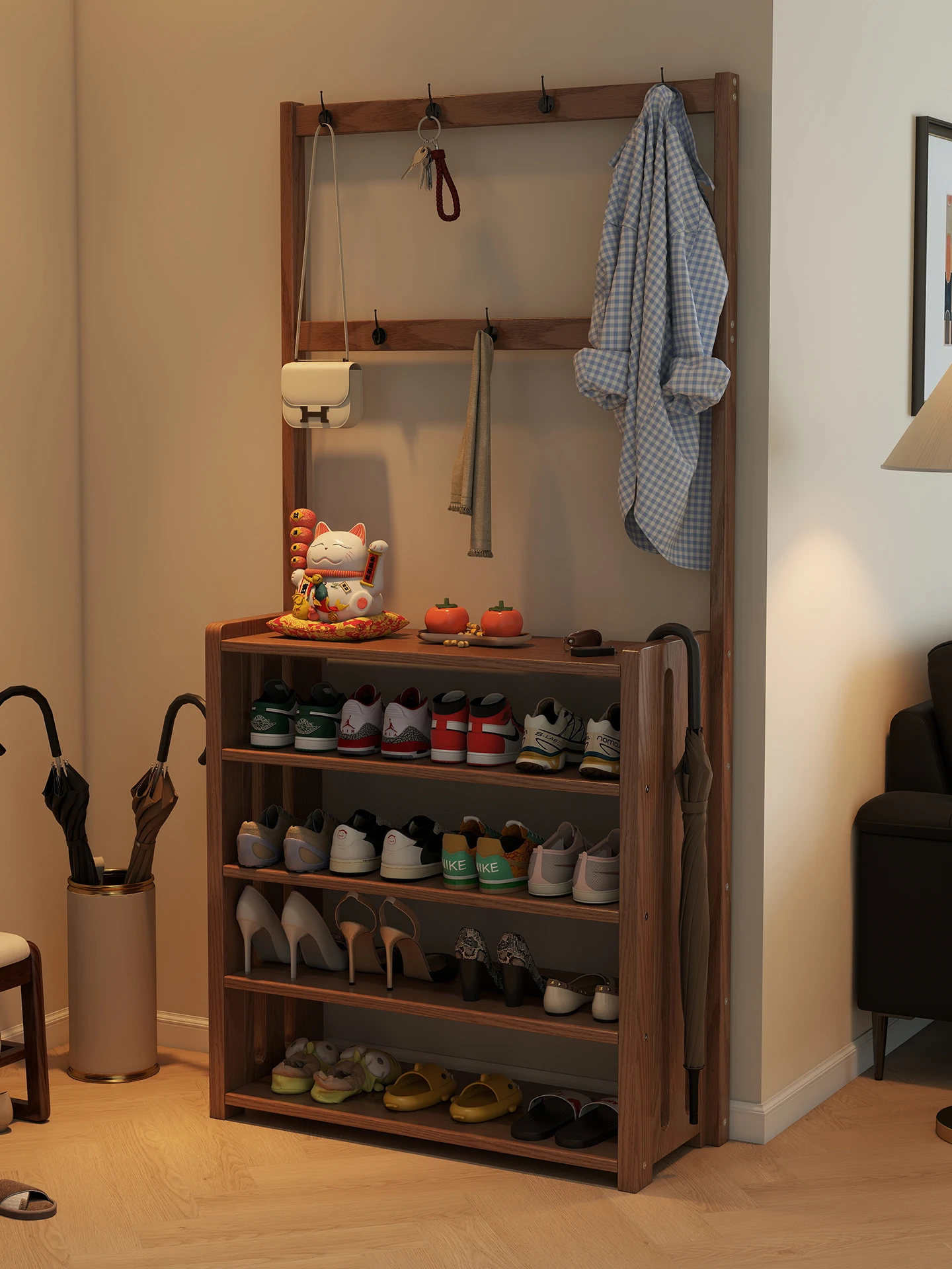 Multipurpose Solid Wood Shoe Rack and Coat Stand - Space-Saving, Multi-Layer Home Entryway Organizer, Slim Design for Narrow Spaces