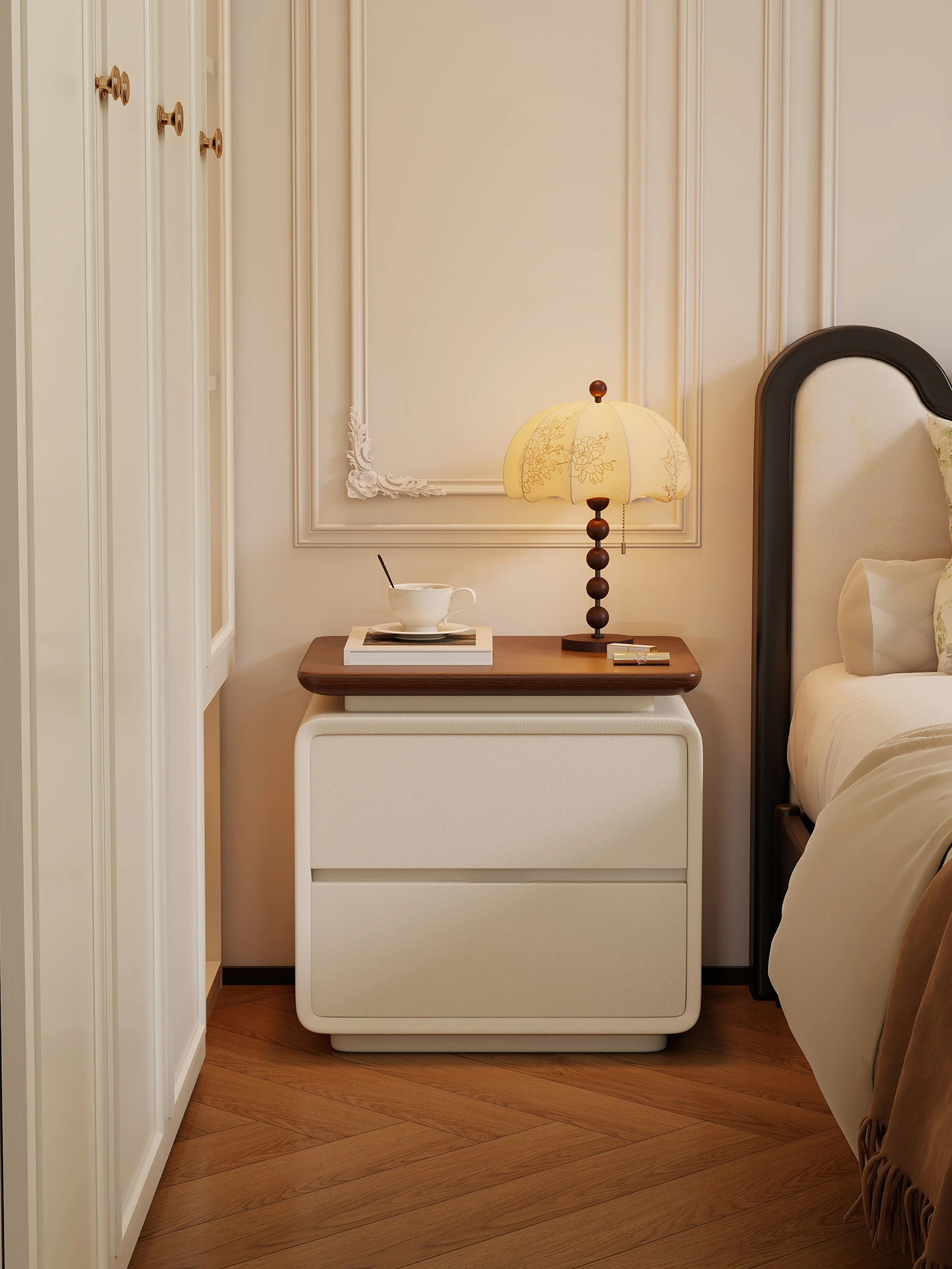 クリーム風の無垢材ベッドサイドテーブル - おしゃれでコンパクト、寝室にぴったりの収納力抜群の小型キャビネット。あなたの空間を美しく整え、便利さをプラスします!