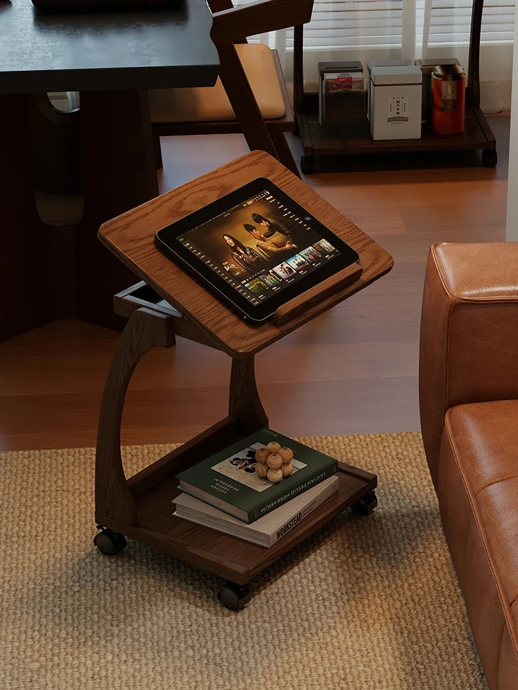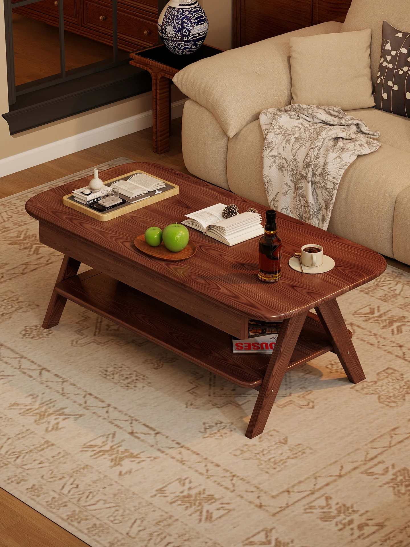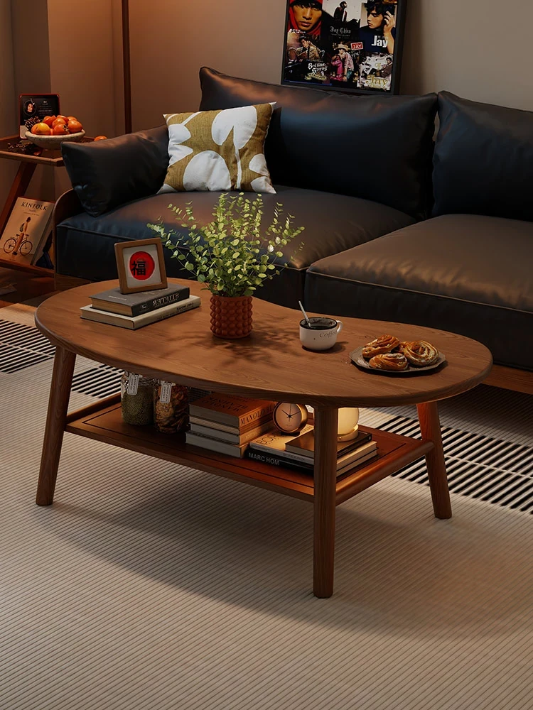 新作!実木製リビングルーム用テーブル - 小型住宅に最適な二段式デザイン。高級感漂うミニマルなロースタイルテーブルで、洗練された空間を演出します。