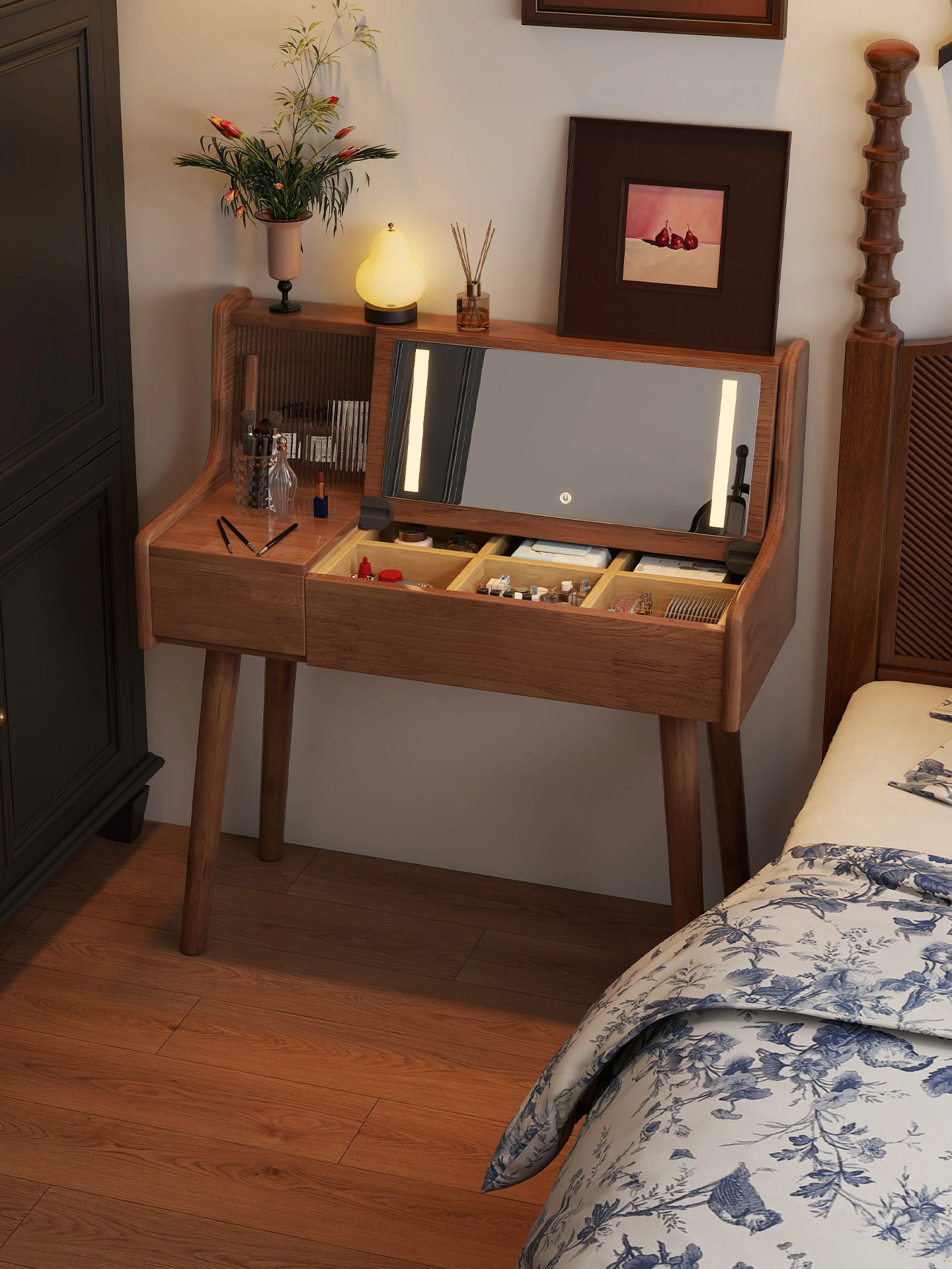 2025年新款!シンプルでモダンなデザインの実木ドレッサー。寝室にぴったりな化粧台とナイトテーブルが一体化!美しさを引き立てるスタイリッシュなアイテムで、毎日のメイクアップが楽しくなります。
