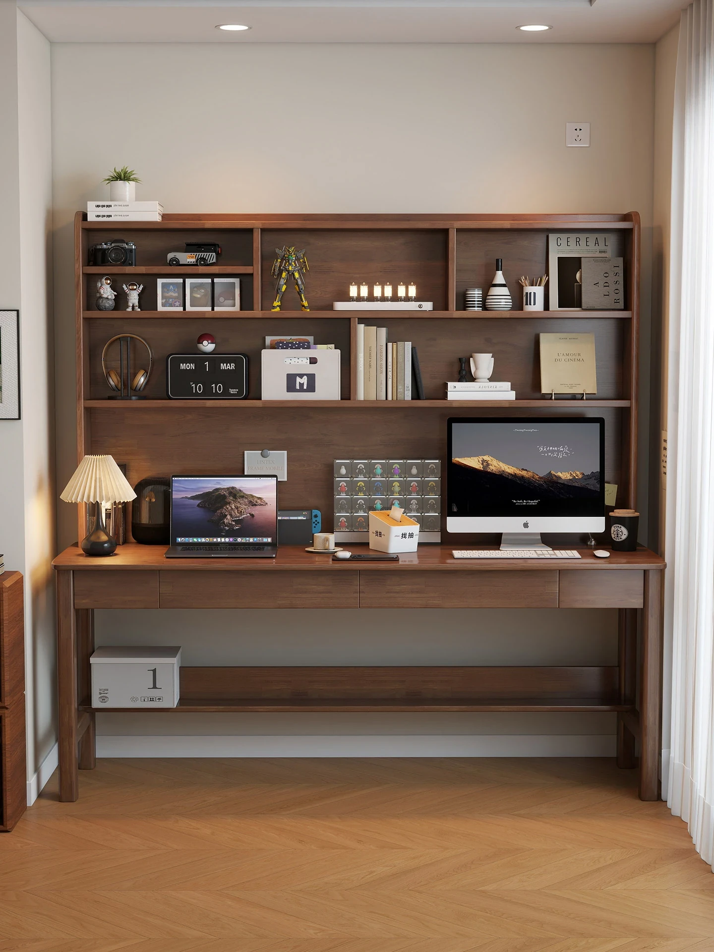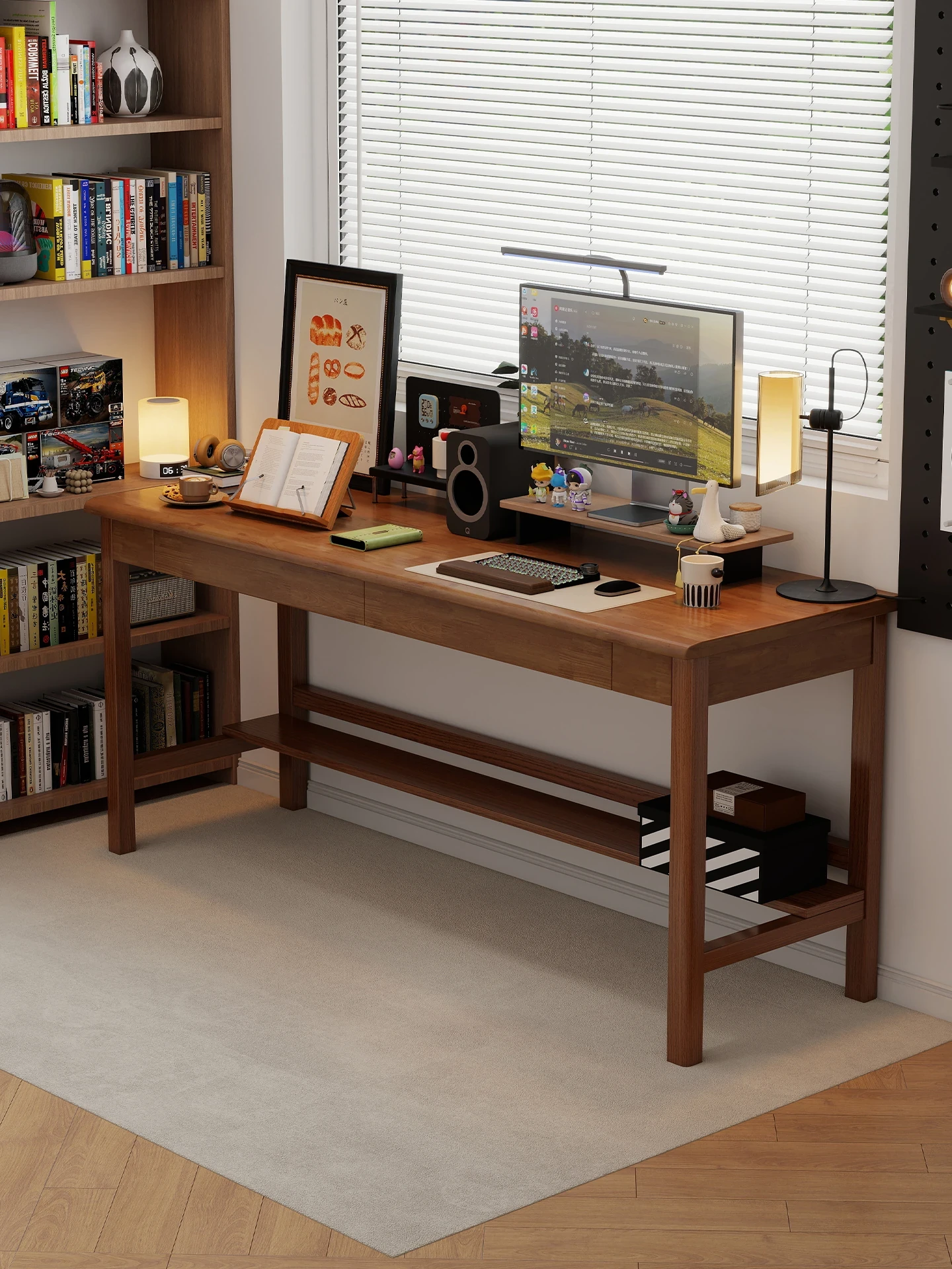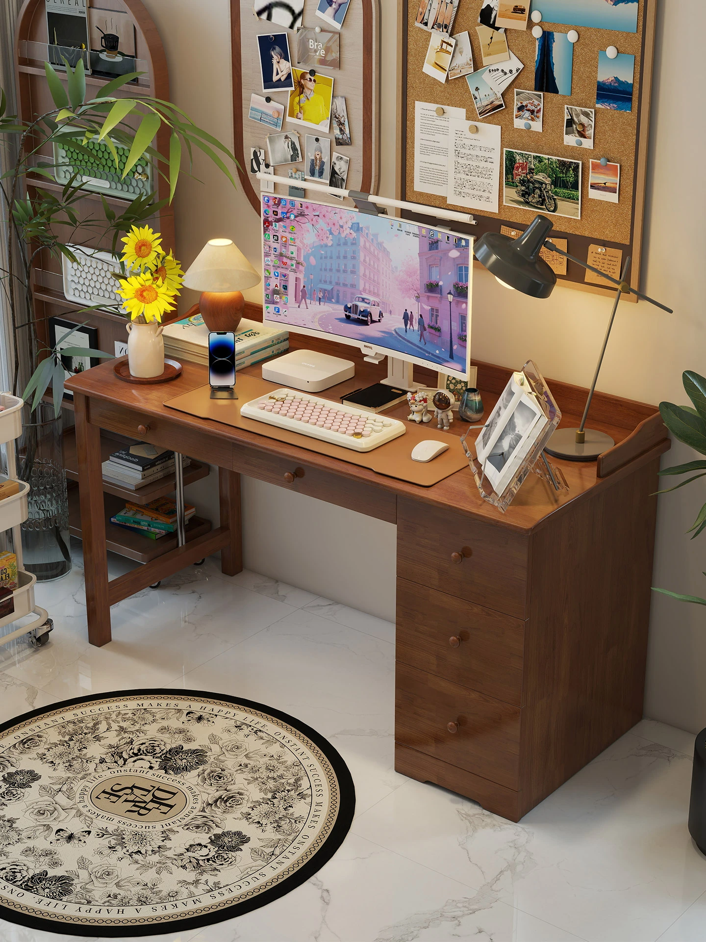 実木製のコンピューターデスク - 引き出し付き、家庭用書斎に最適!オフィスや寝室にもぴったりな学生向け学習デスク。スタイリッシュで機能的、あなたの学びや仕事をサポートします!