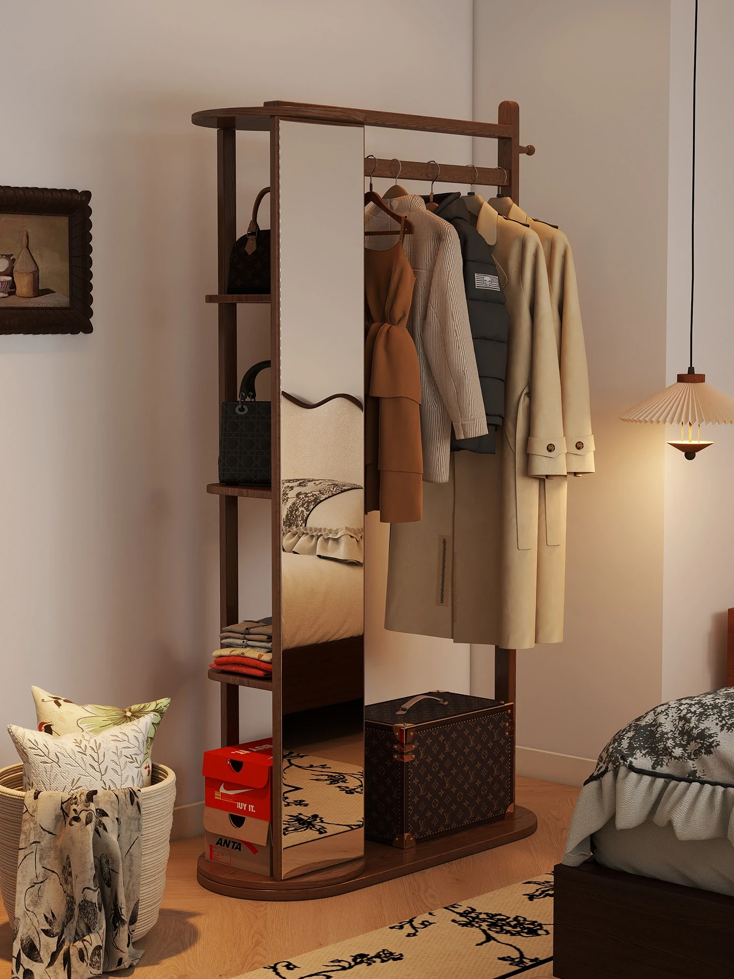 全実木製のレトロな衣類ハンガー|多機能なフロアスタンドの収納ラック|贅沢感あふれるデザインで、あなたの寝室をオシャレに演出!