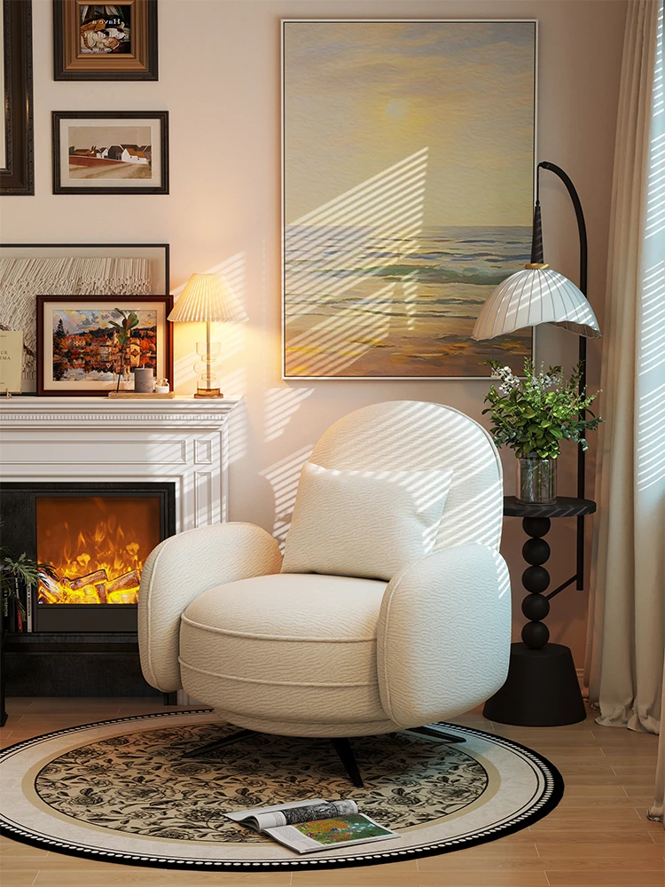 回転式シングルソファ|現代的でシンプルなデザインのクリーム風ソファ|リビングにぴったりな快適な背もたれ付きリラックスチェア