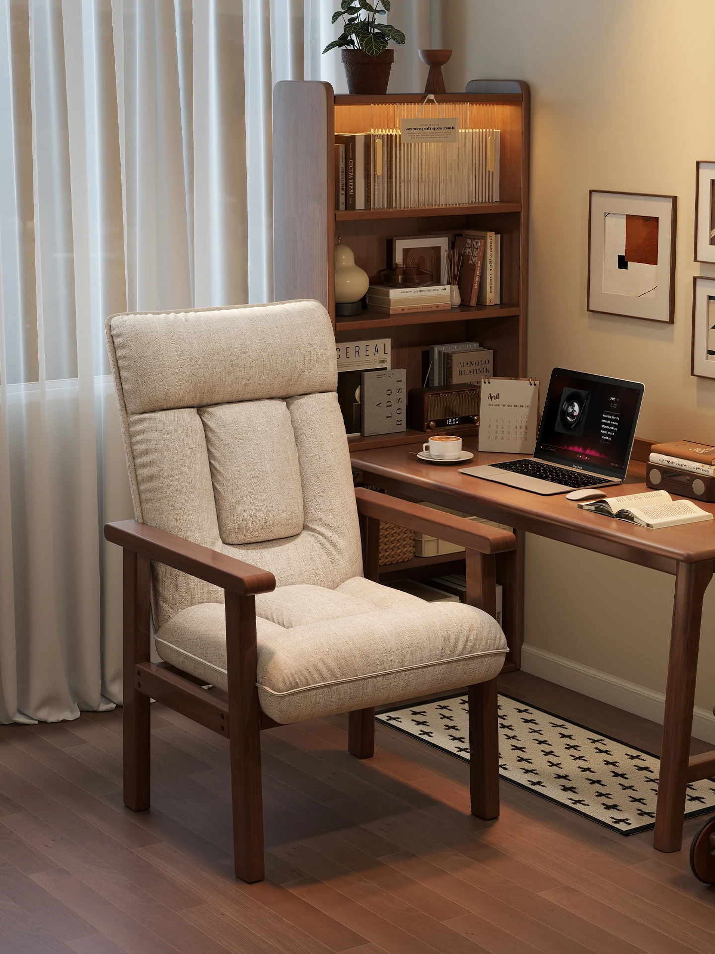 快適なリクライニング機能付き!木製デザインのホームオフィス用パソコンチェア。書斎や休憩に最適な折りたたみ式ソファチェア。長時間の作業も安心!
