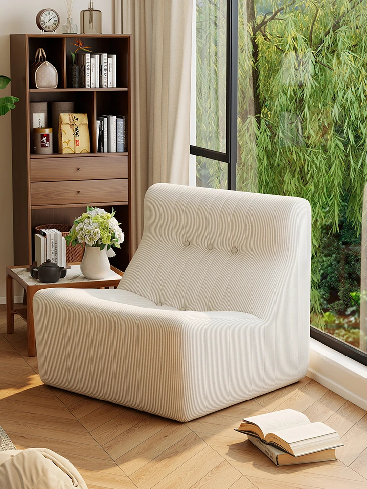 一人用ラウンジソファ|シンプルでモダンなデザイン|寝室やバルコニー、リビングに最適|柔らかいコーデュロイ素材でリラックス!