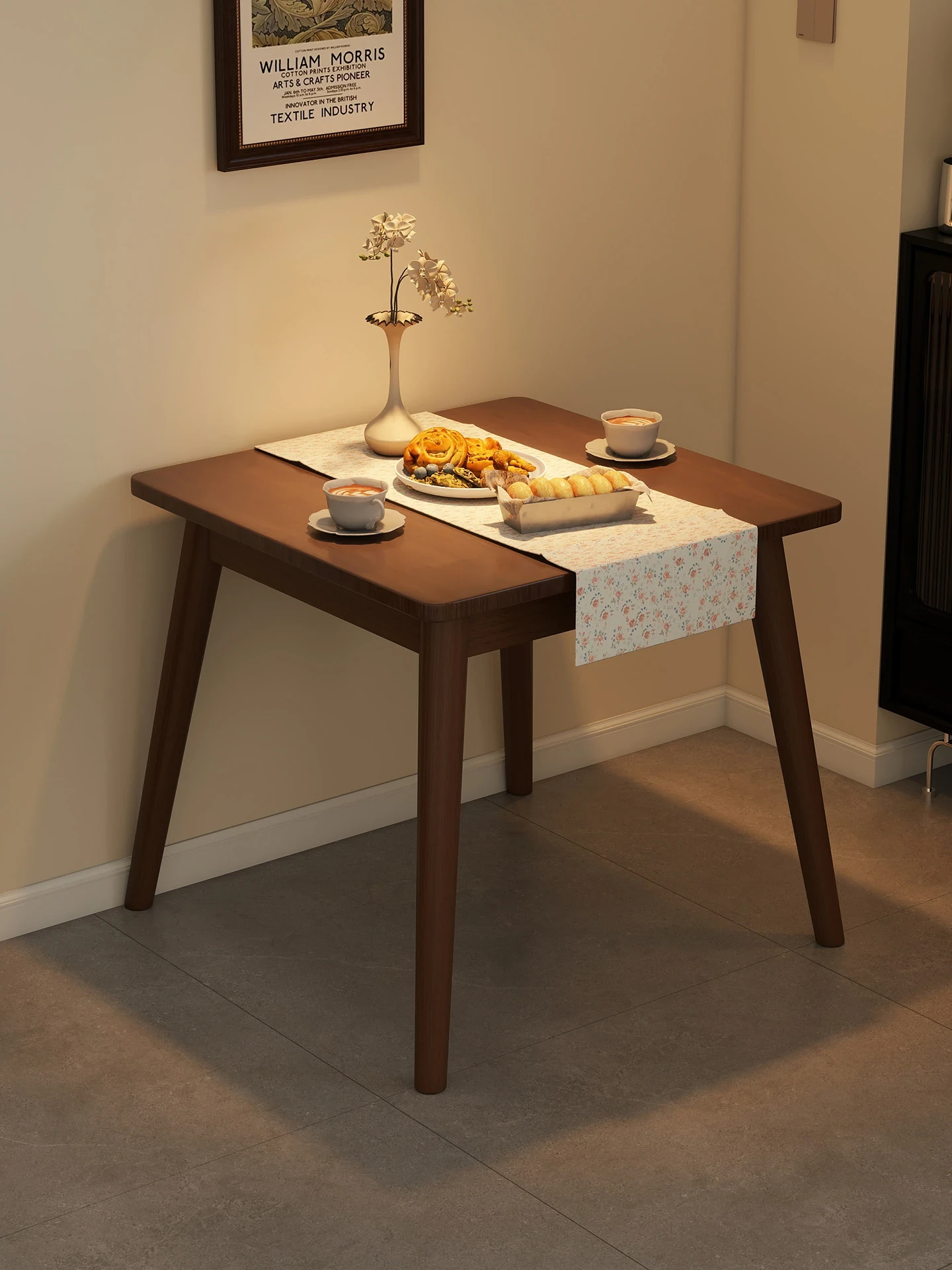 フレンチヴィンテージの無垢材ダイニングテーブル|中華風の小型家庭向け|ロッジボールエレファントレッグ長方形テーブル&チェアセットで、心温まる食卓を演出!