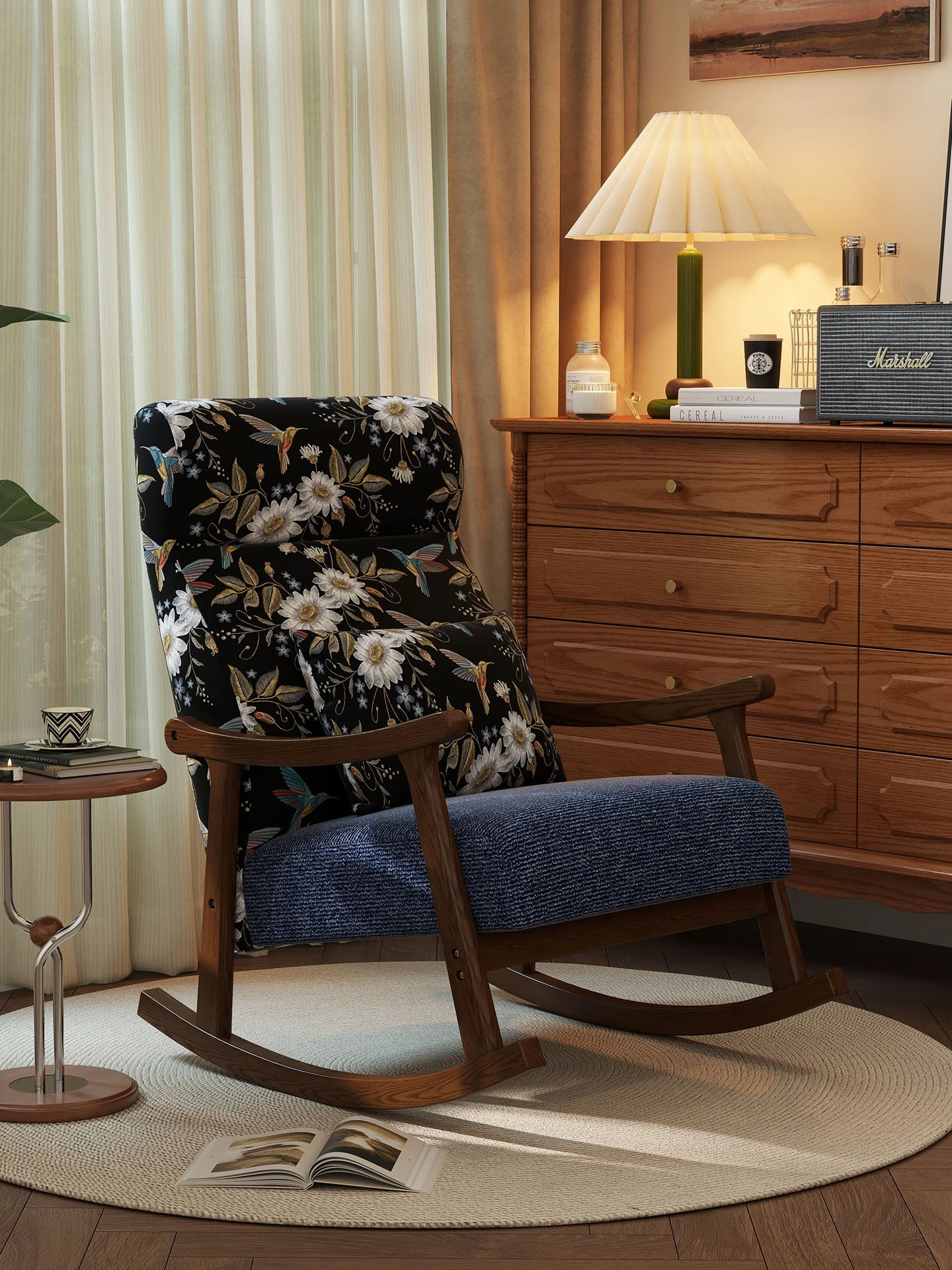 レトロなリラックスロッキングチェア大人用バルコニー家庭用カジュアルチェア単人用ソファリビングルーム用無垢材製の心地よい椅子で、ゆったりとした時間をお楽しみください!