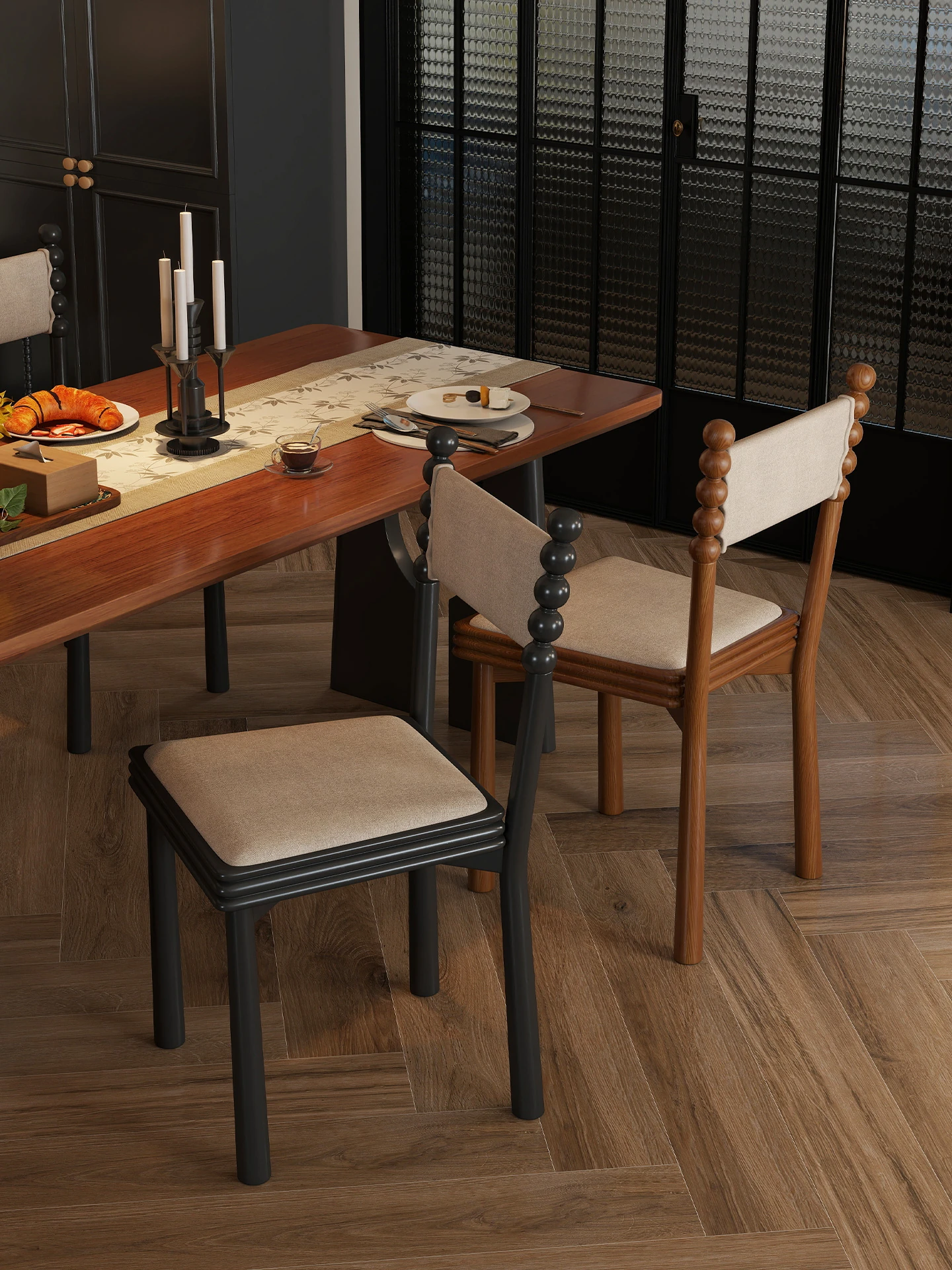 アンティーク風の実木ダイニングテーブルセット - 商用にも最適なシンプルな牛角チェア、背もたれ付きで快適な家庭用ダイニングチェア。実用性抜群のスタイリッシュな椅子で、食卓を華やかに演出します!