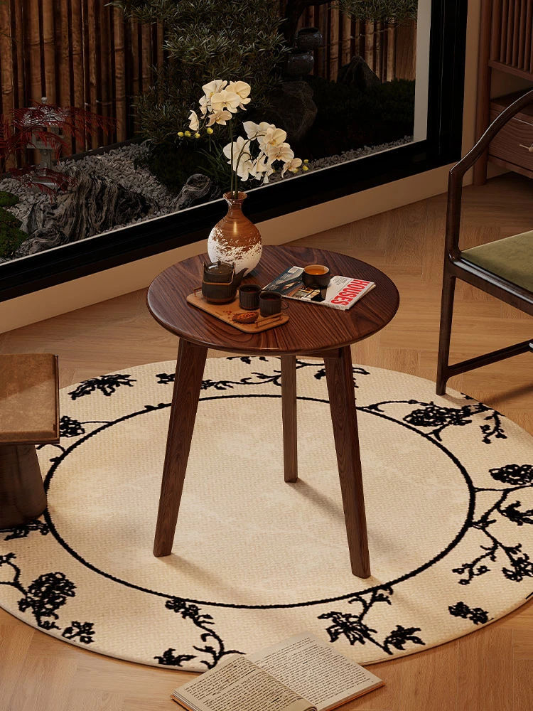 バルコニー用小型丸テーブル|家庭用無垢材のティーテーブル|シンプルでモダンなリビング用お茶テーブル|リラックスと会話を楽しむためのクリエイティブなデザイン!