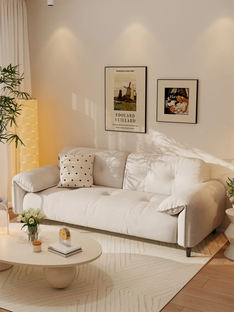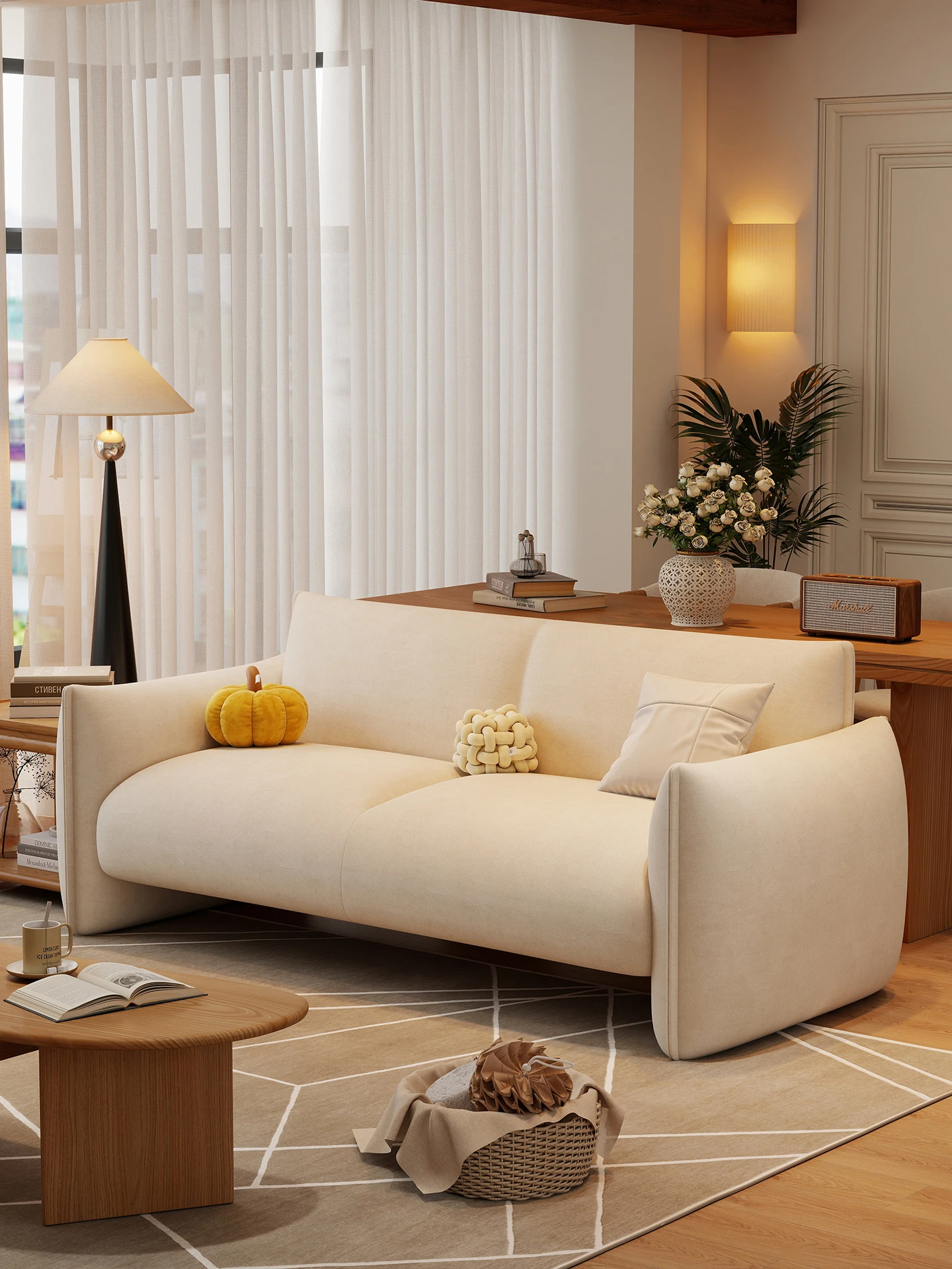 クリーム色の布製ソファ - 小さなリビングにぴったりなモダンでシンプルなデザイン!二人掛け、アパート向けのスリムな三人掛けソファ。スタイリッシュな空間を演出し、快適なひとときを提供します。